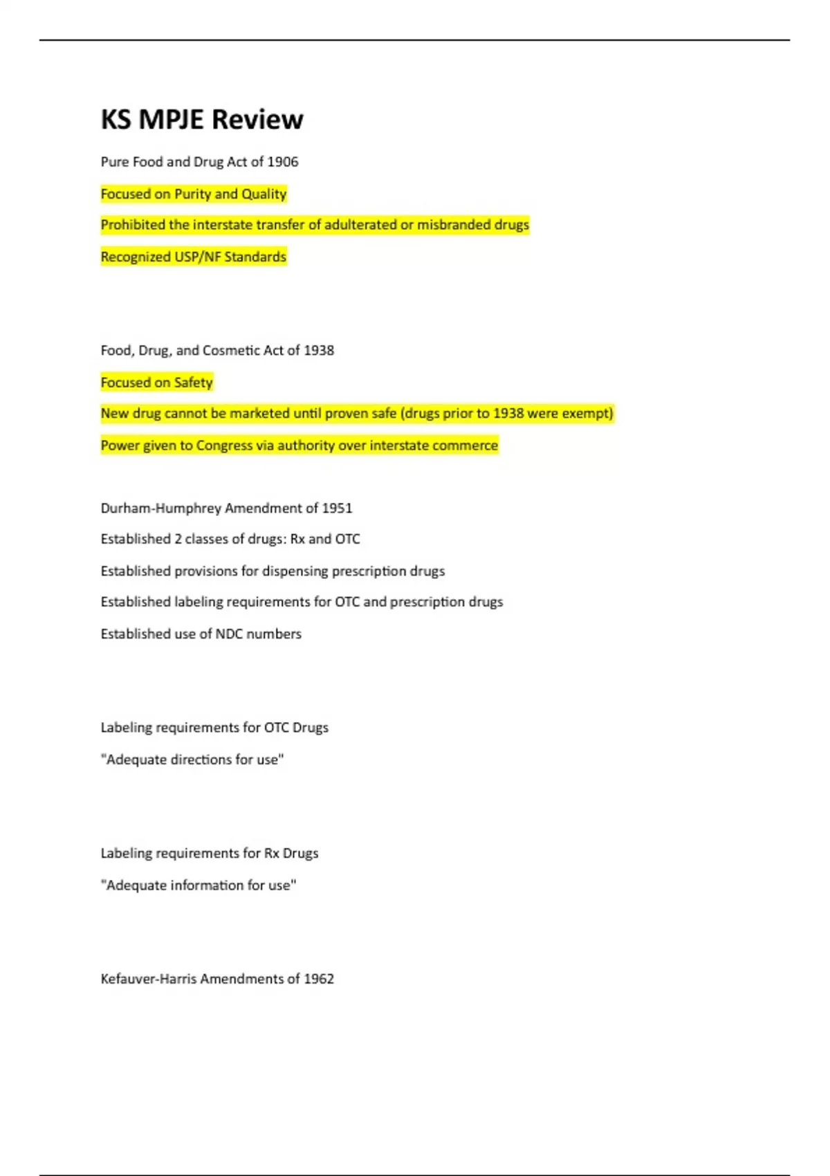 New drug cannot be marketed until proven safe (drugs prior to 1938 were exempt)