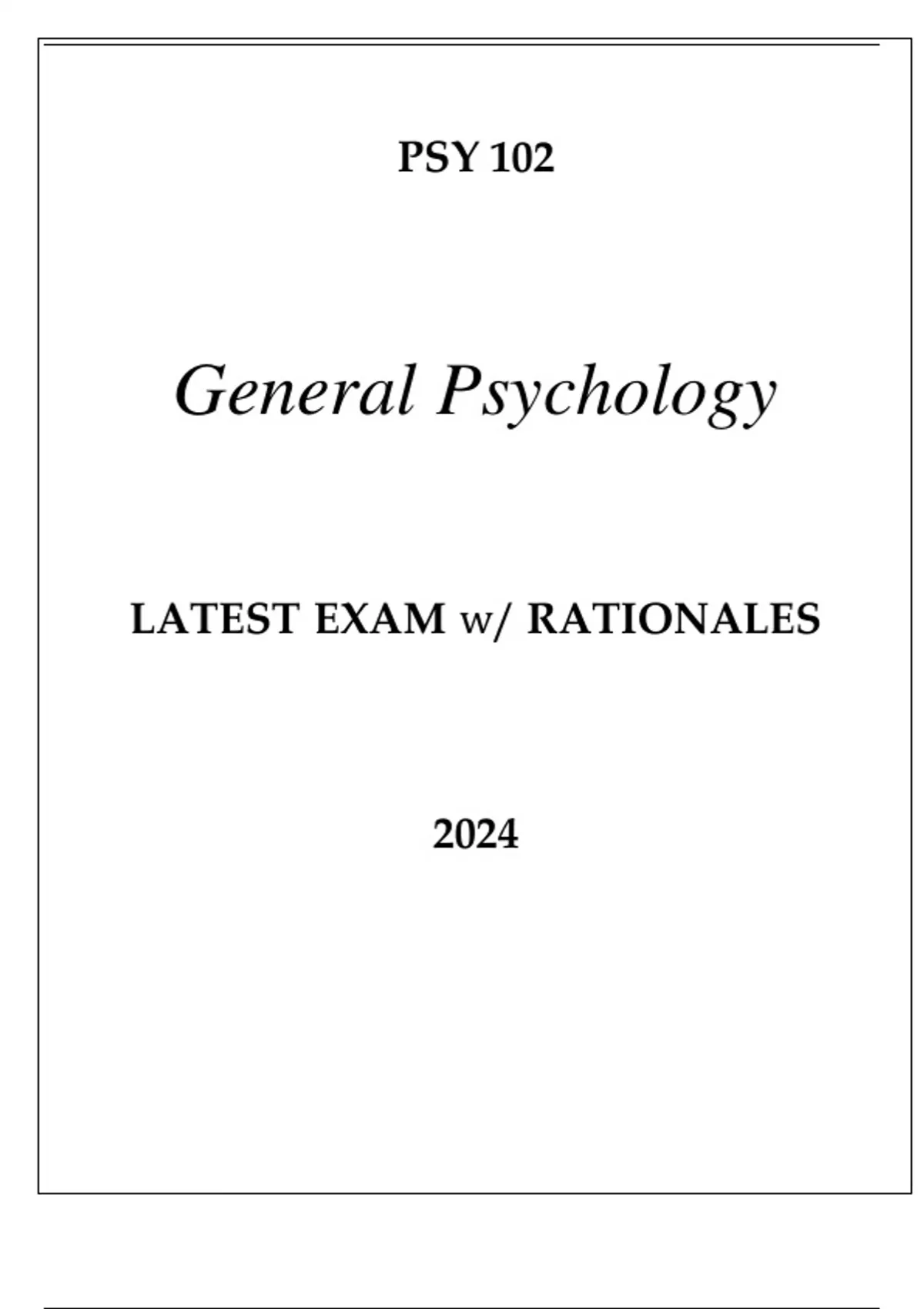 PSY 102 GENERAL PSYCHOLOGY LATEST EXAM WITH RATIONALES 2024.PSY 102 GENERAL PSYCHOLOGY LATEST EXAM WITH RATIONALES 2024.