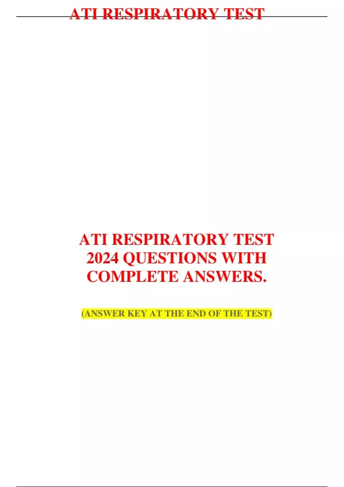 ATI RESPIRATORY TEST 2024 QUESTIONS WITH COMPLETE ANSWERS.