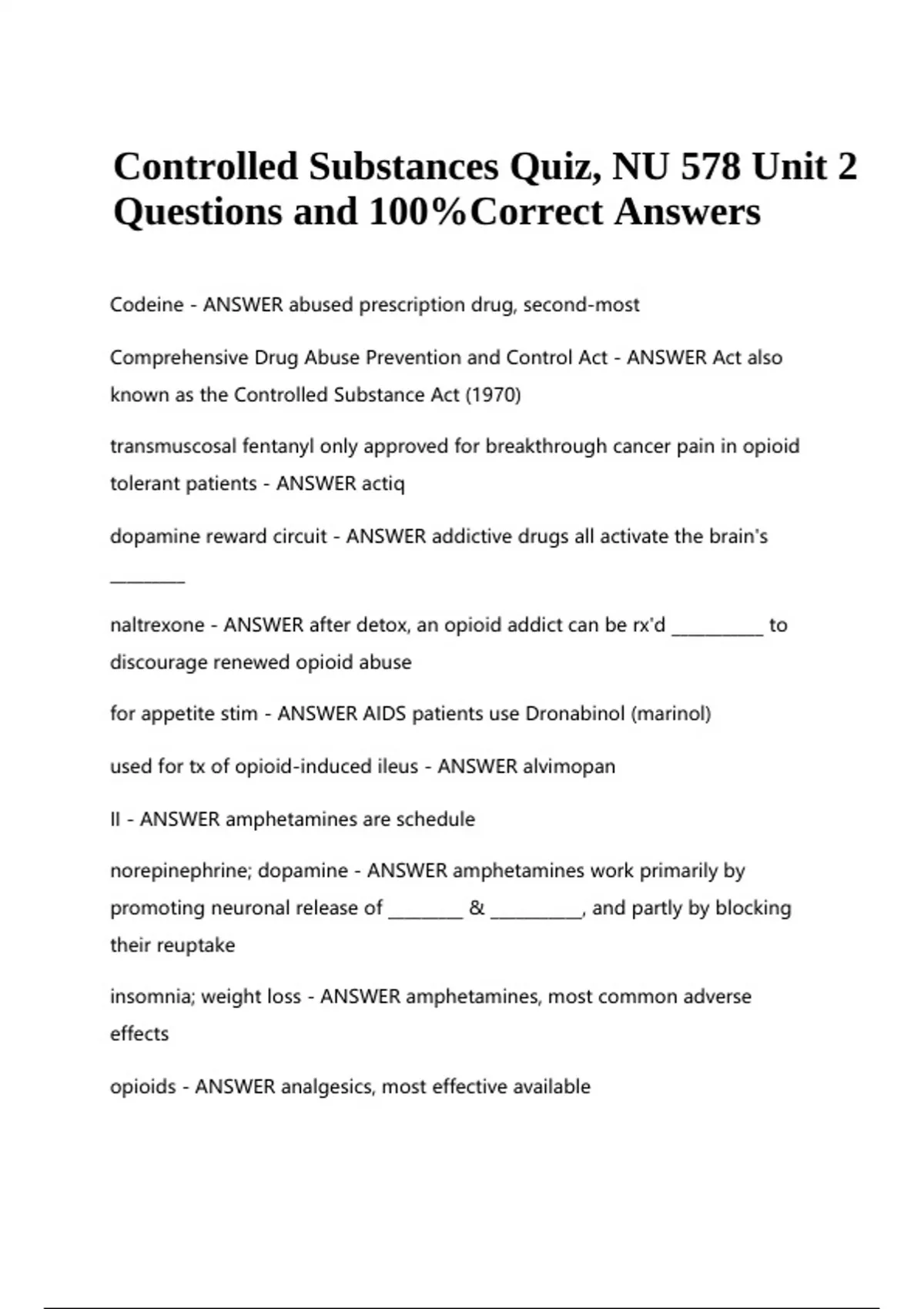 Controlled Substances Quiz, NU 578 Unit 2 Questions and 100%Correct Answers.