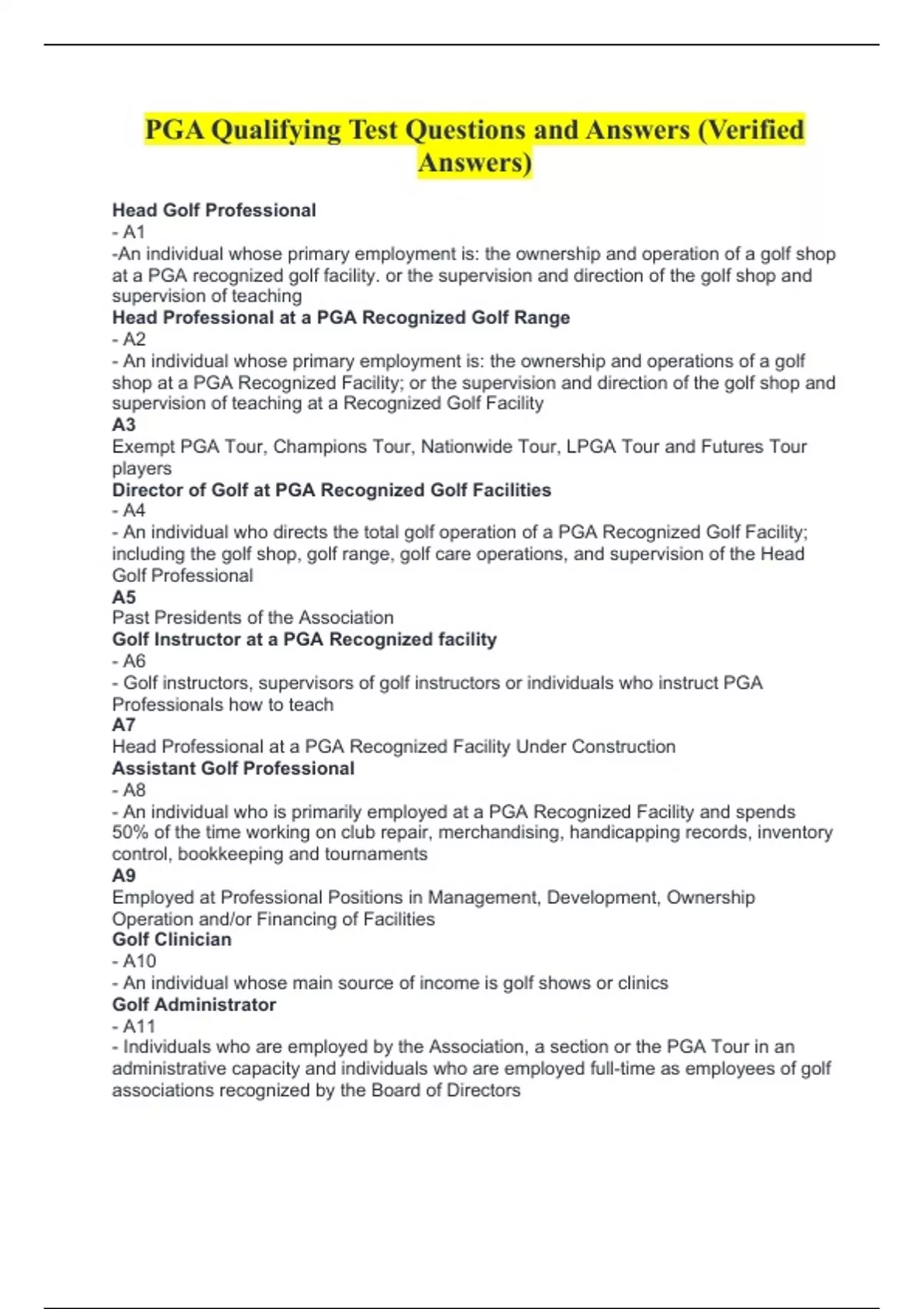- An individual who directs the total golf operation of a PGA Recognized Golf Facility;