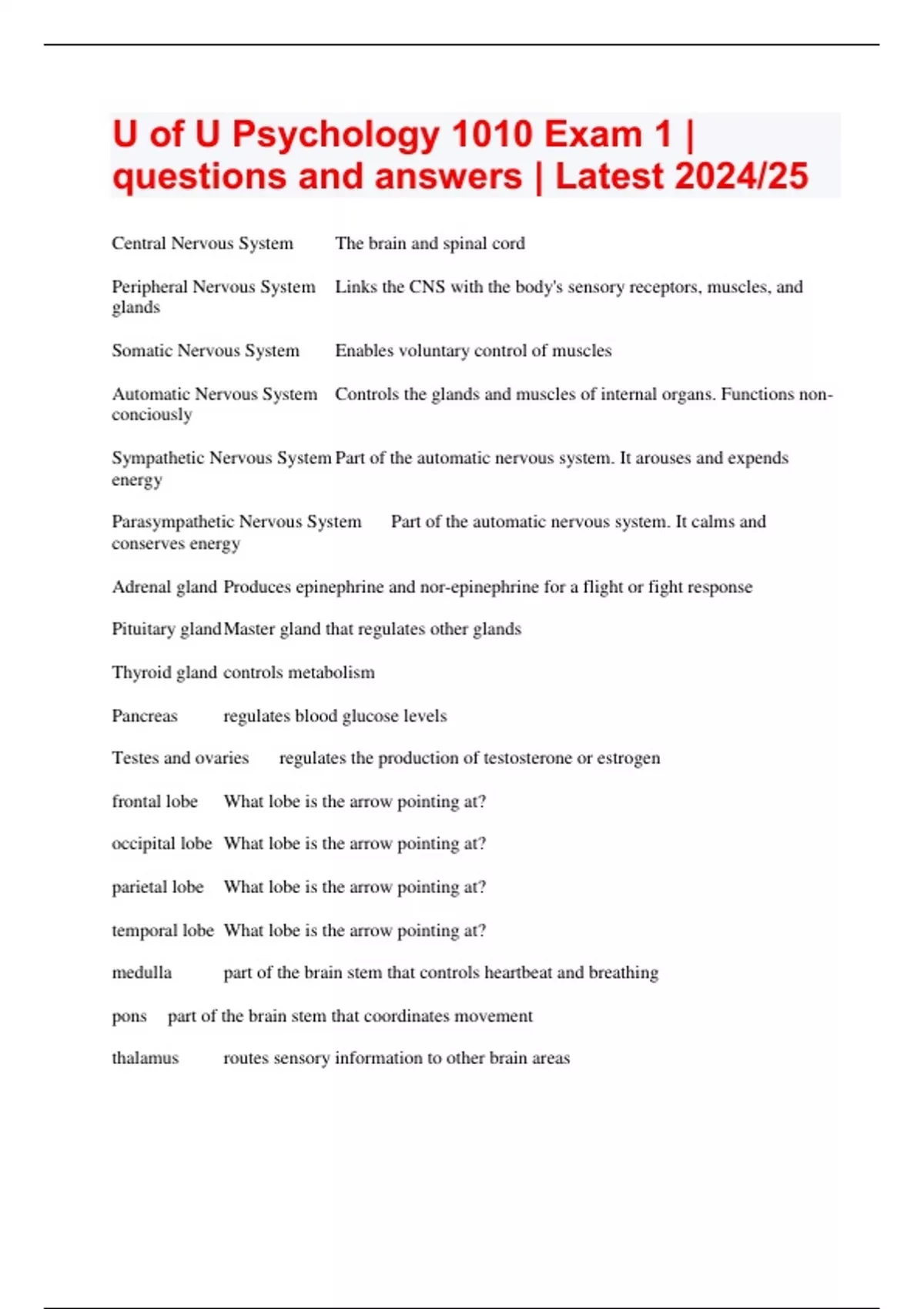 U of U Psychology 1010 Exam 1 | questions and answers | Latest 2024/25