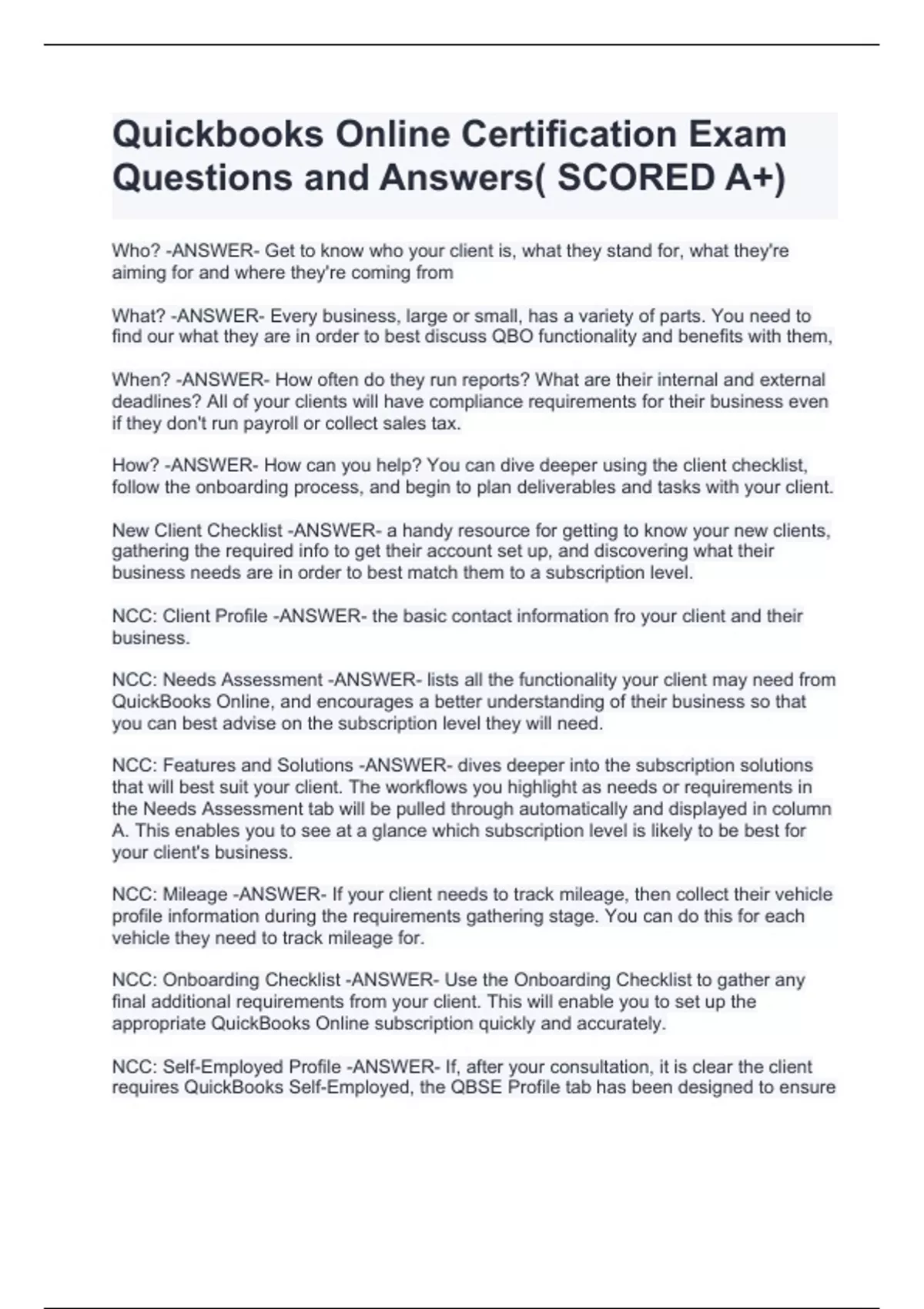 Quickbooks Online Certification Exam Questions and Answers( SCORED A+)