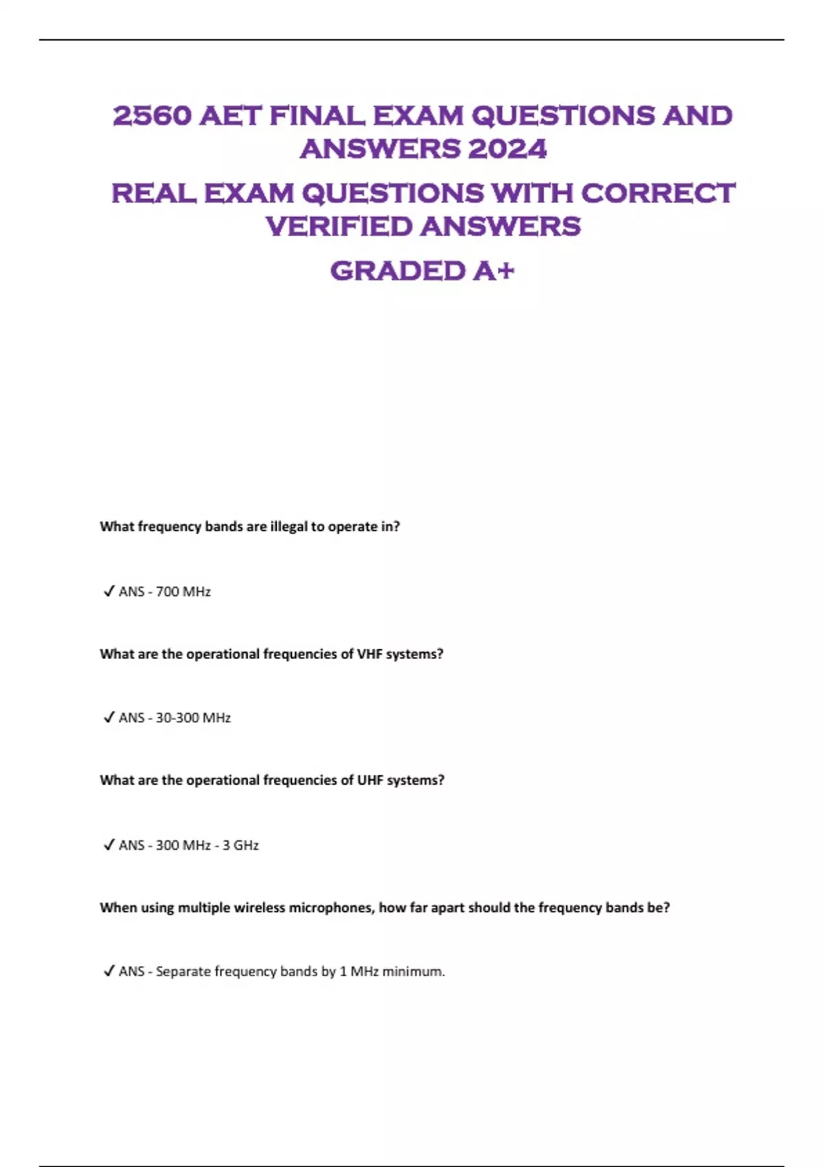 2560 AET FINAL EXAM QUESTIONS AND ANSWERS 2024 REAL EXAM QUESTIONS WITH CORRECT VERIFIED ANSWERS GRADED A+