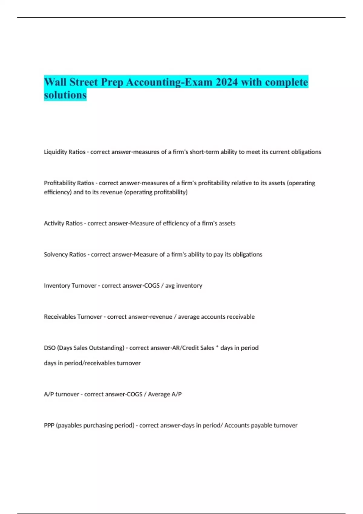 Wall Street Prep Accounting-Exam 2024 with complete solutions