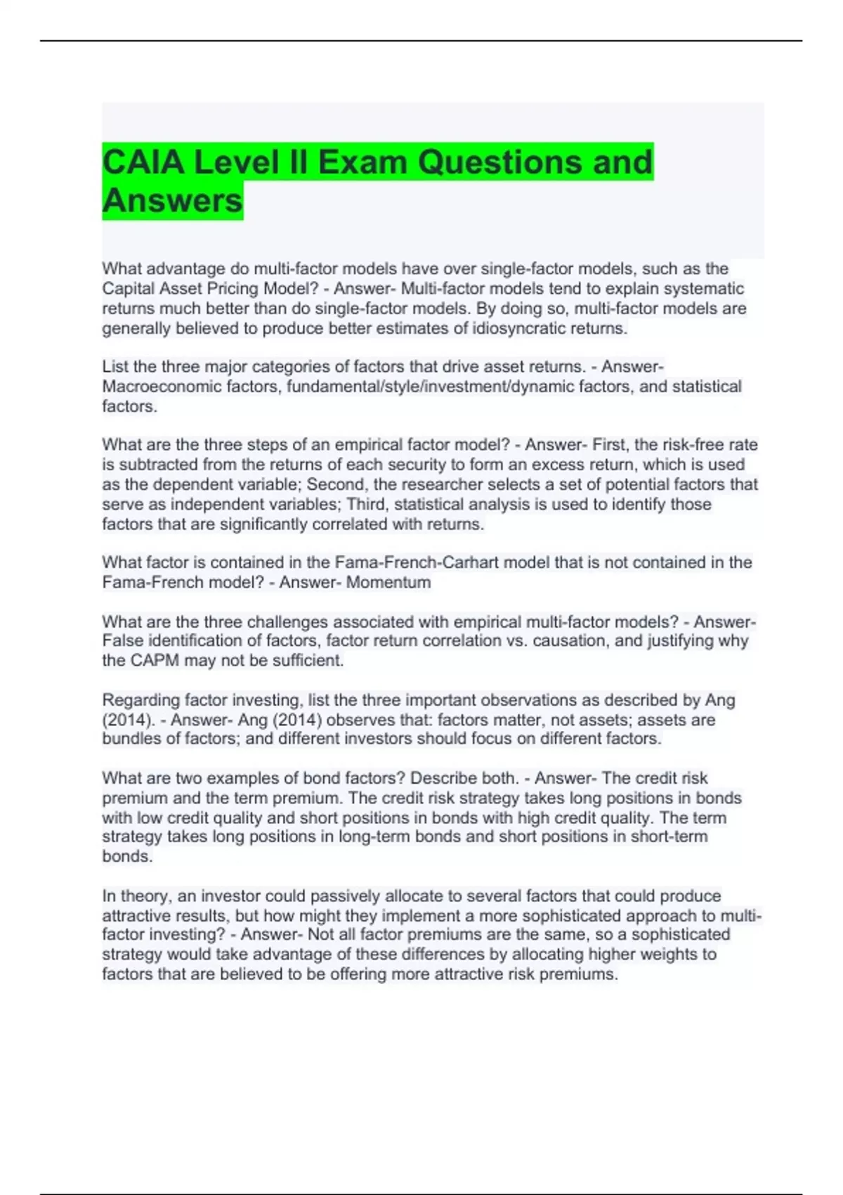 CAIA Level II Exam Questions and Answers-Graded A