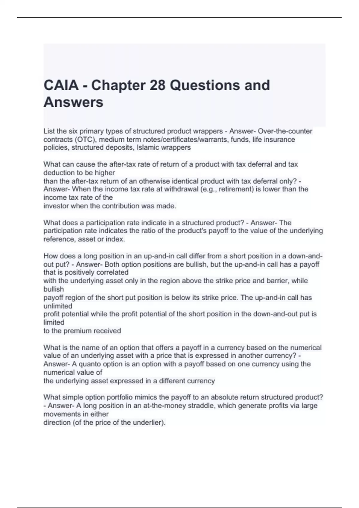 CAIA - Chapter 28 Questions and Answers- Graded A
