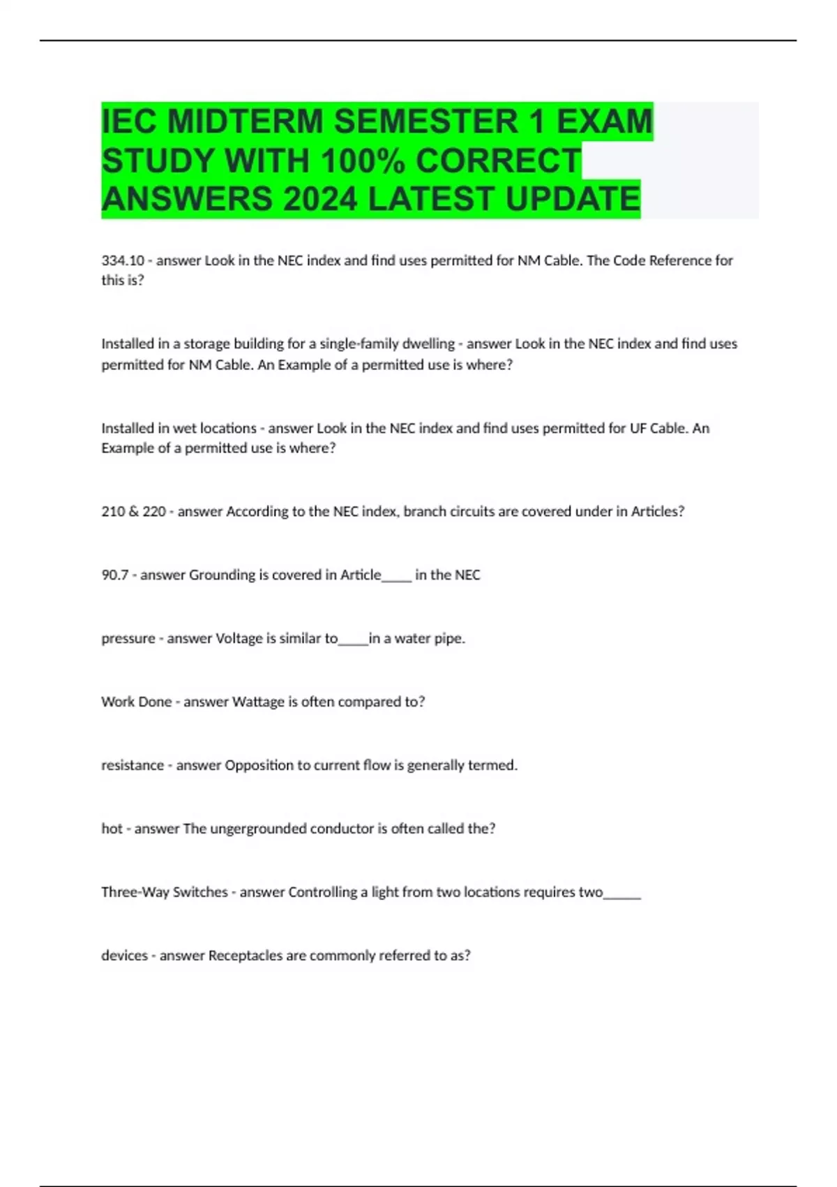 IEC MIDTERM SEMESTER 1 EXAM STUDY WITH 100% CORRECT ANSWERS 2024
