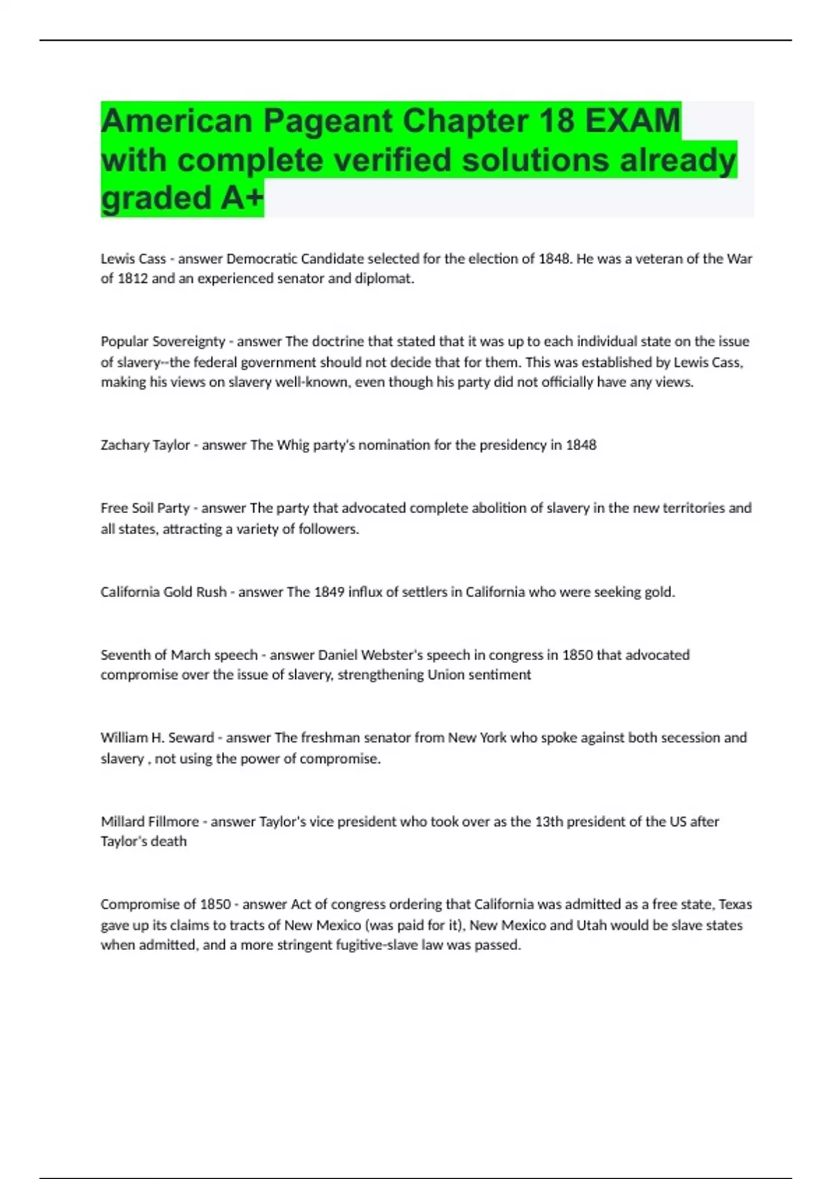 American Pageant Chapter 18 EXAM with complete verified solutions already graded A+.