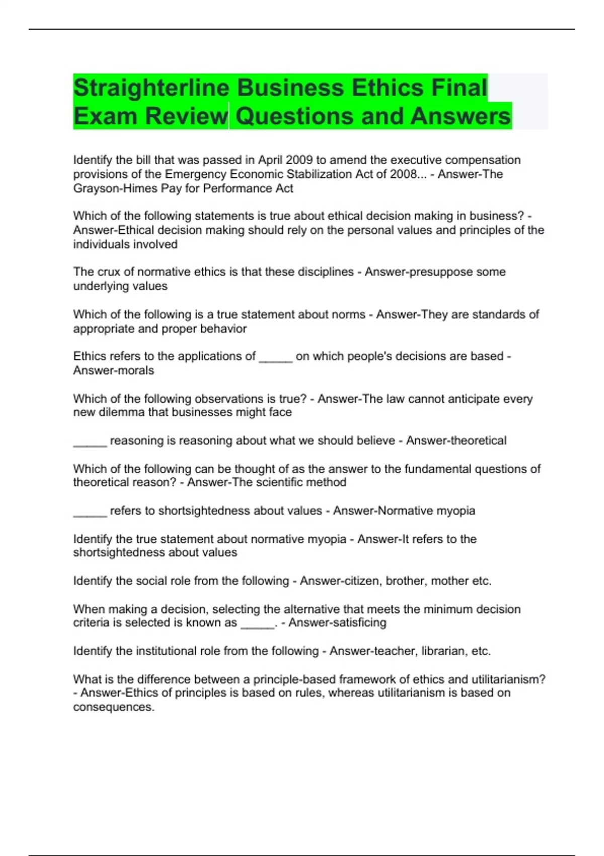 Answer-Ethical decision making should rely on the personal values and principles of the