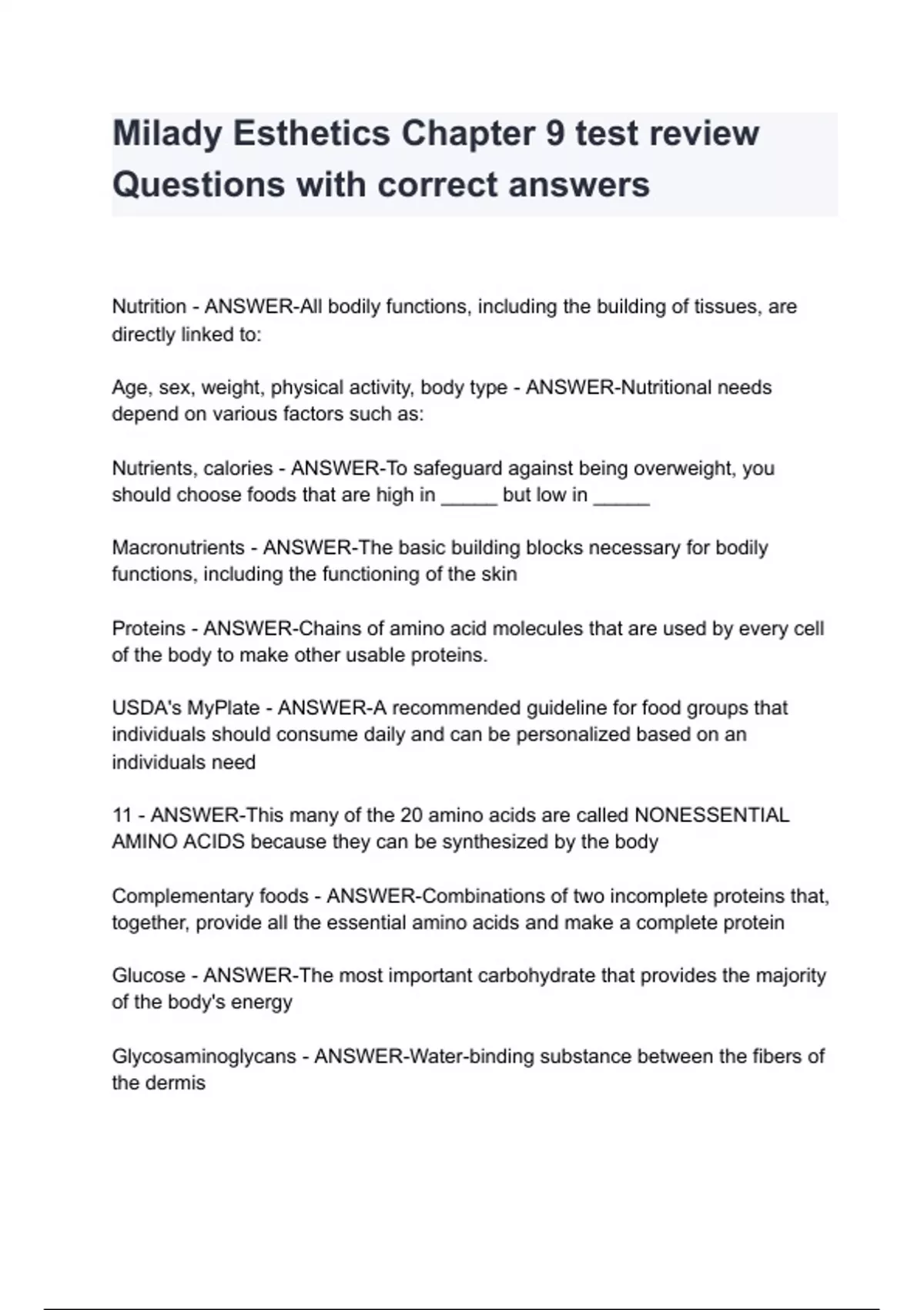 - Milady Esthetics Chapter 9 tst revew Questins w