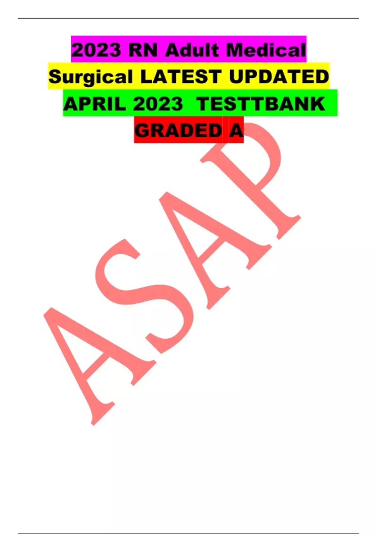 2023 RN Adult Medical Surgical LATEST UPDATED APRIL 2023 TESTTBANK GRADED A