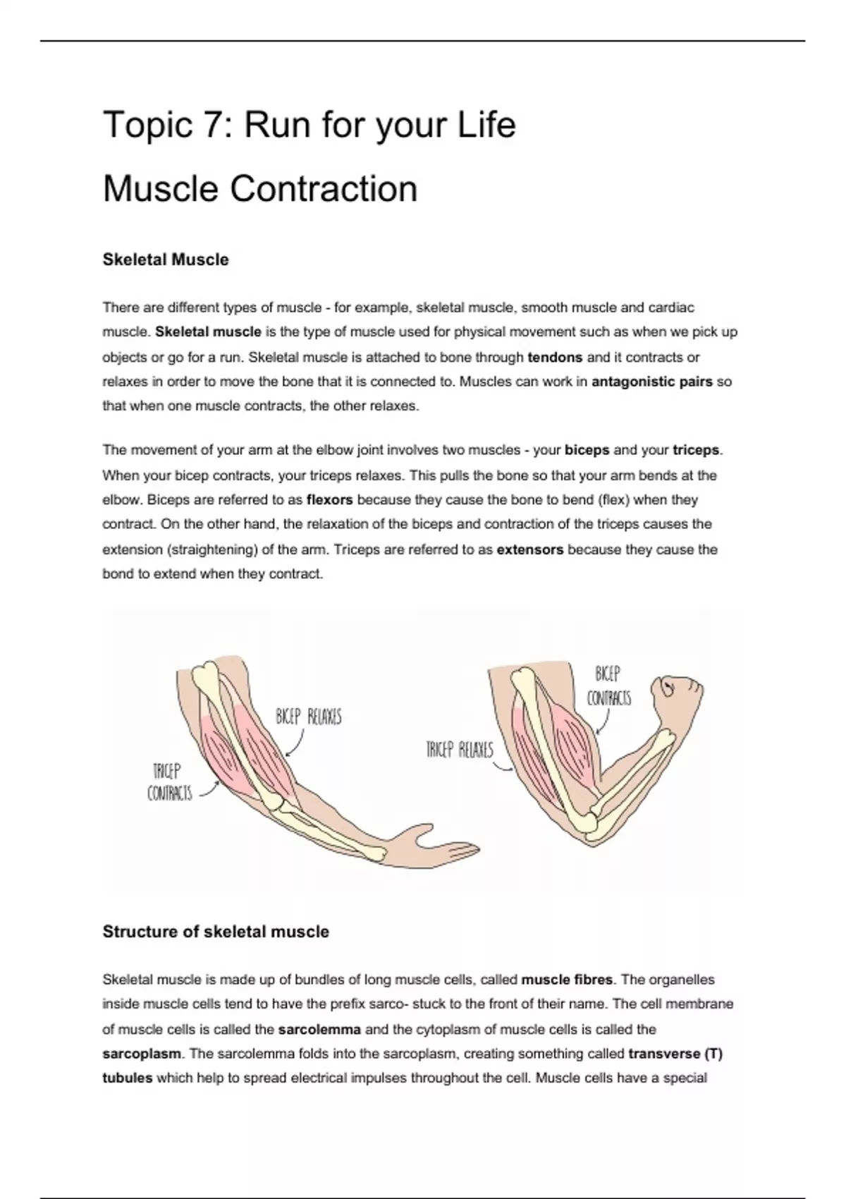 objects or go for a run. Skeletal muscle is attached to bone through tendons and it contracts or