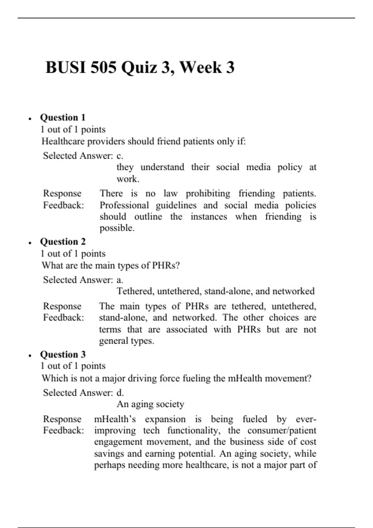 BUSI 505 Quiz 3 (4 Versions), BUSI 505 HEALTH CARE INFORMATICS, Liberty University.