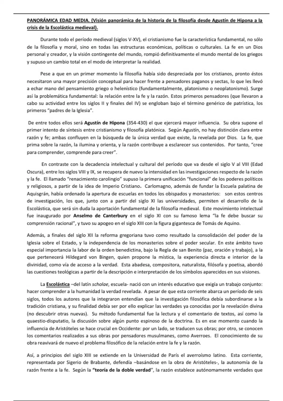 PANORÁMICA EDAD MEDIA. (Visión panorámica de la historia de la filosofía desde Agustín de Hipona a la