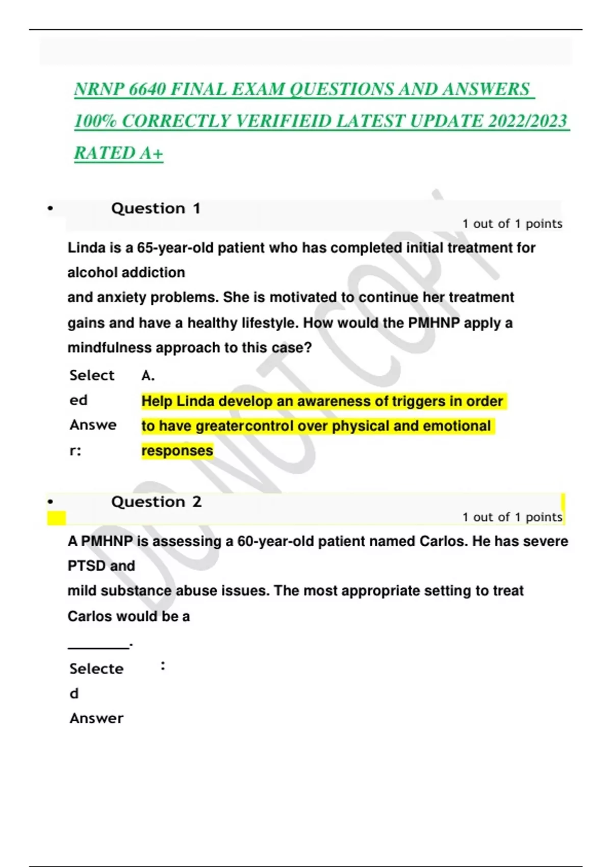 NRNP 6640 FINAL EXAM QUESTIONS AND ANSWERS 100% CORRECTLY VERIFIEID LATEST UPDATE 2022/2023 RATED A+