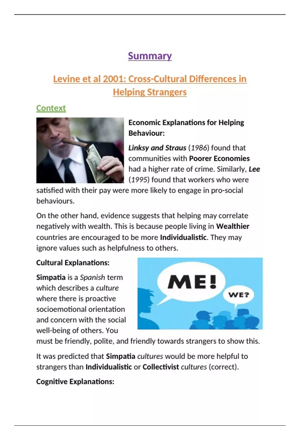 This document includes: - A full DETAILED SUMMARY of the study - The key points of the study - A link to a Quizlet flashcard set, regarding the DETAILED SUMMARY. In the DETAILED SUMMARY: - Context - Aim - Method, Design, Experiment - Conclusion - Evaluations - Linking to The Area and Theme Extra: - Pictures - Headings, for easy navigation using the 'Navigation Pane' on Windows - Bolded Key Bits in the DETAILED SUMMARY - Linking to The Area and Theme