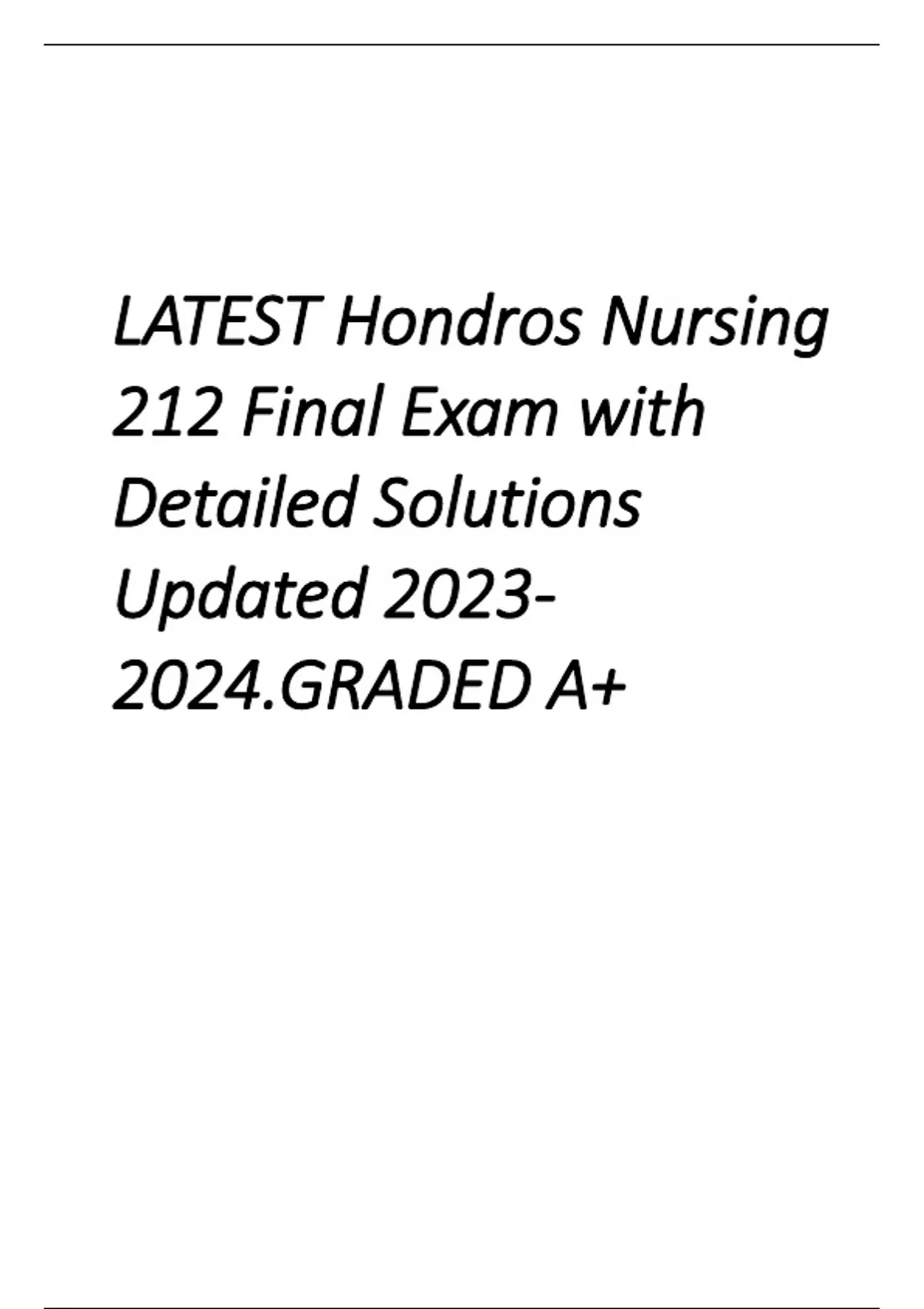 LATEST Hondros Nursing 212 Final Exam with Detailed Solutions Updated 2023- 2024.GRADED A+