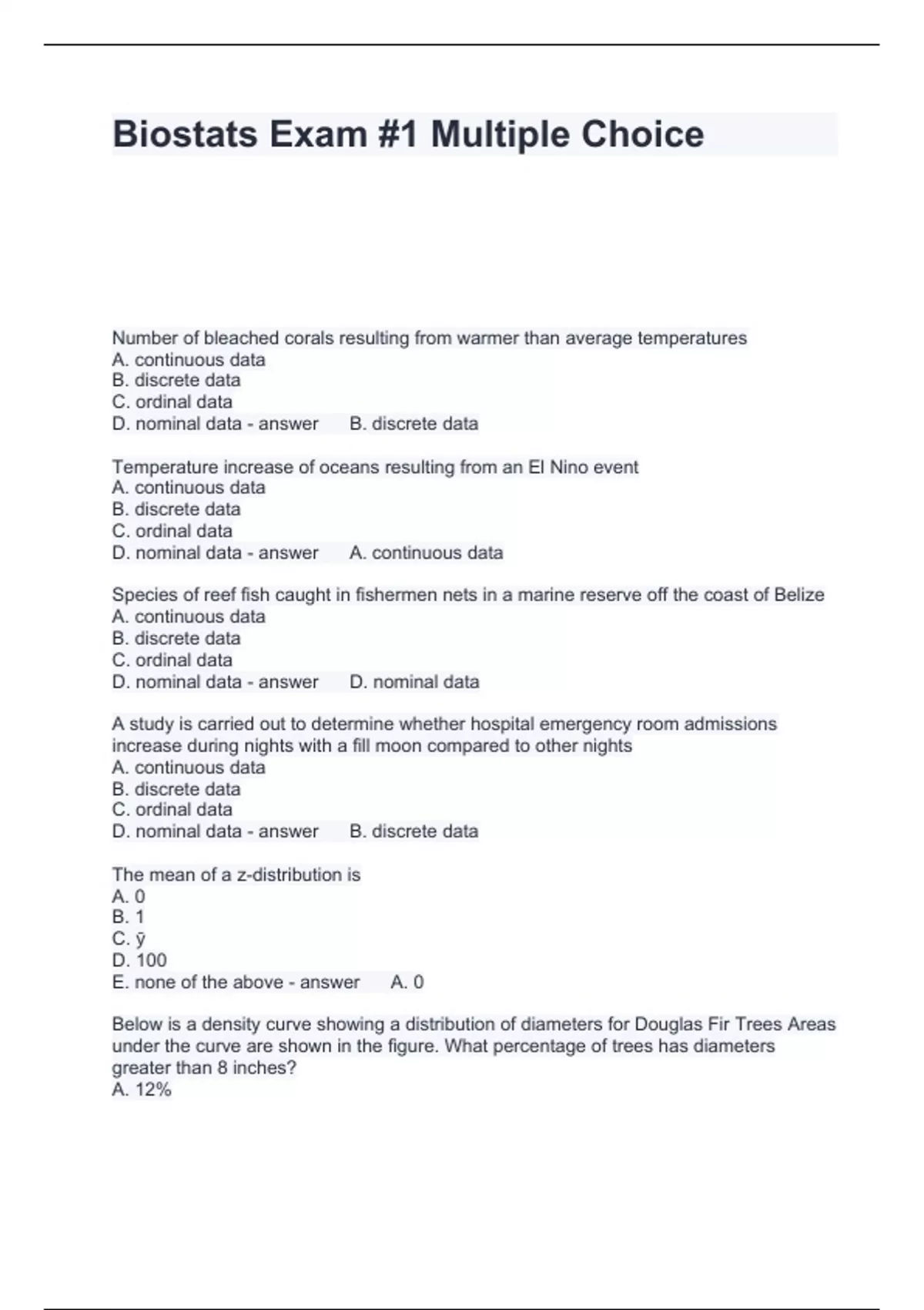 Biostats Exam #1 Multiple Choice Questions and Answers 2024