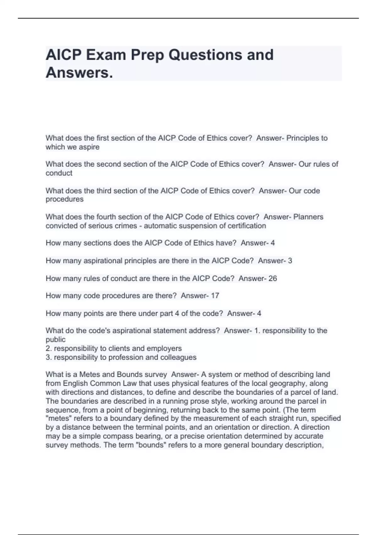 AICP Exam Prep Questions and Answers