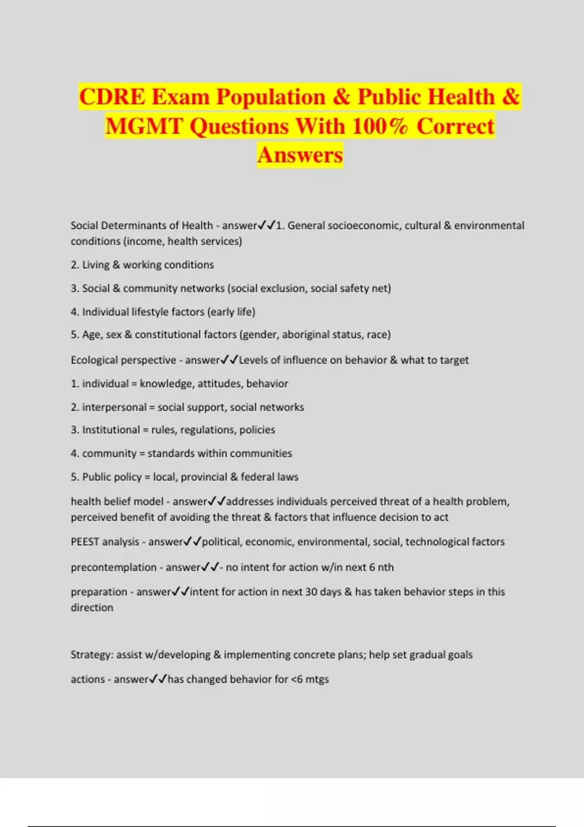 CDRE Exam Population & Public Health & MGMT Questions With 100% Correct Answers