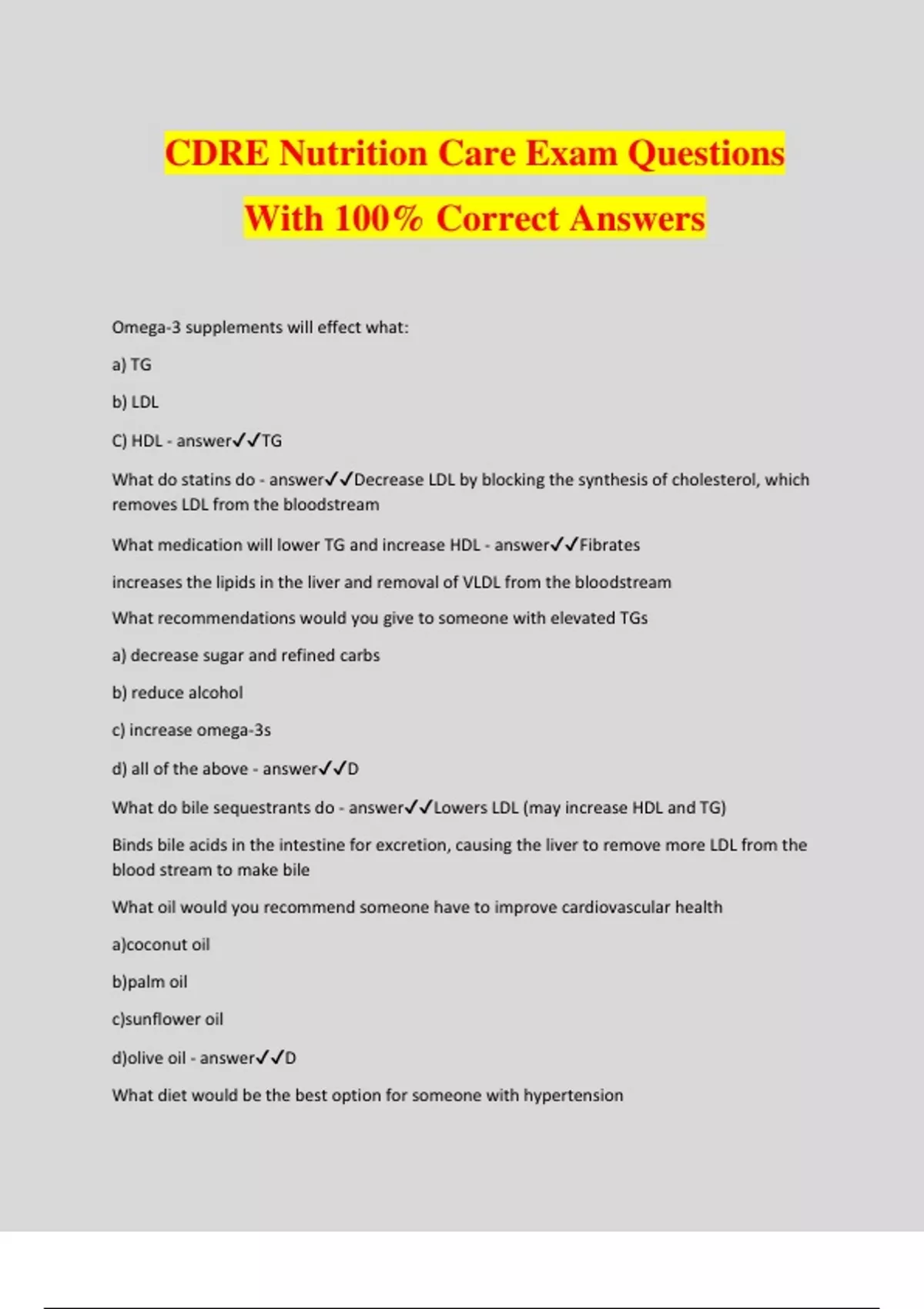 CDRE Nutrition Care Exam Questions With 100% Correct Answers