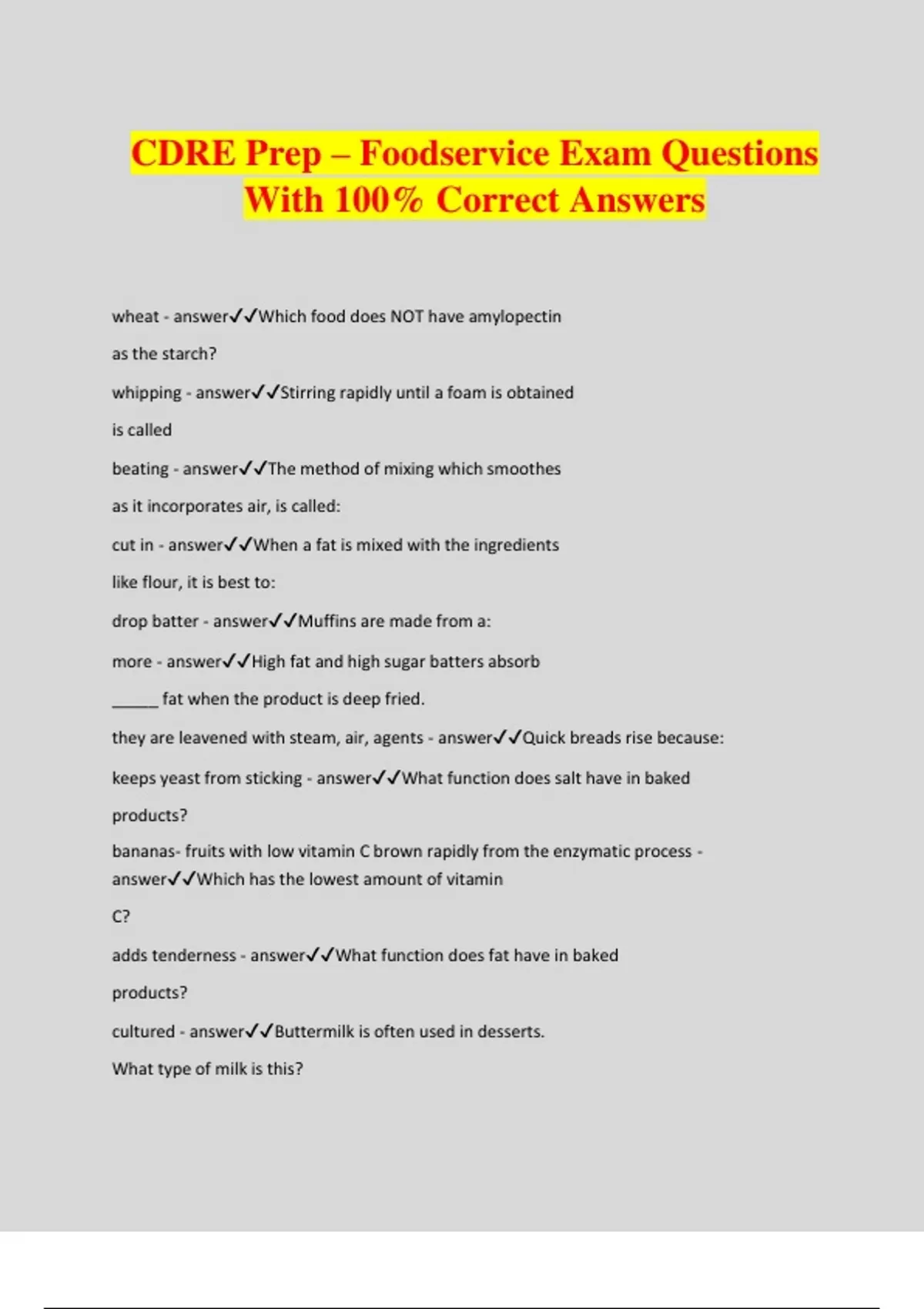 CDRE Prep – Foodservice Exam Questions With 100% Correct Answers