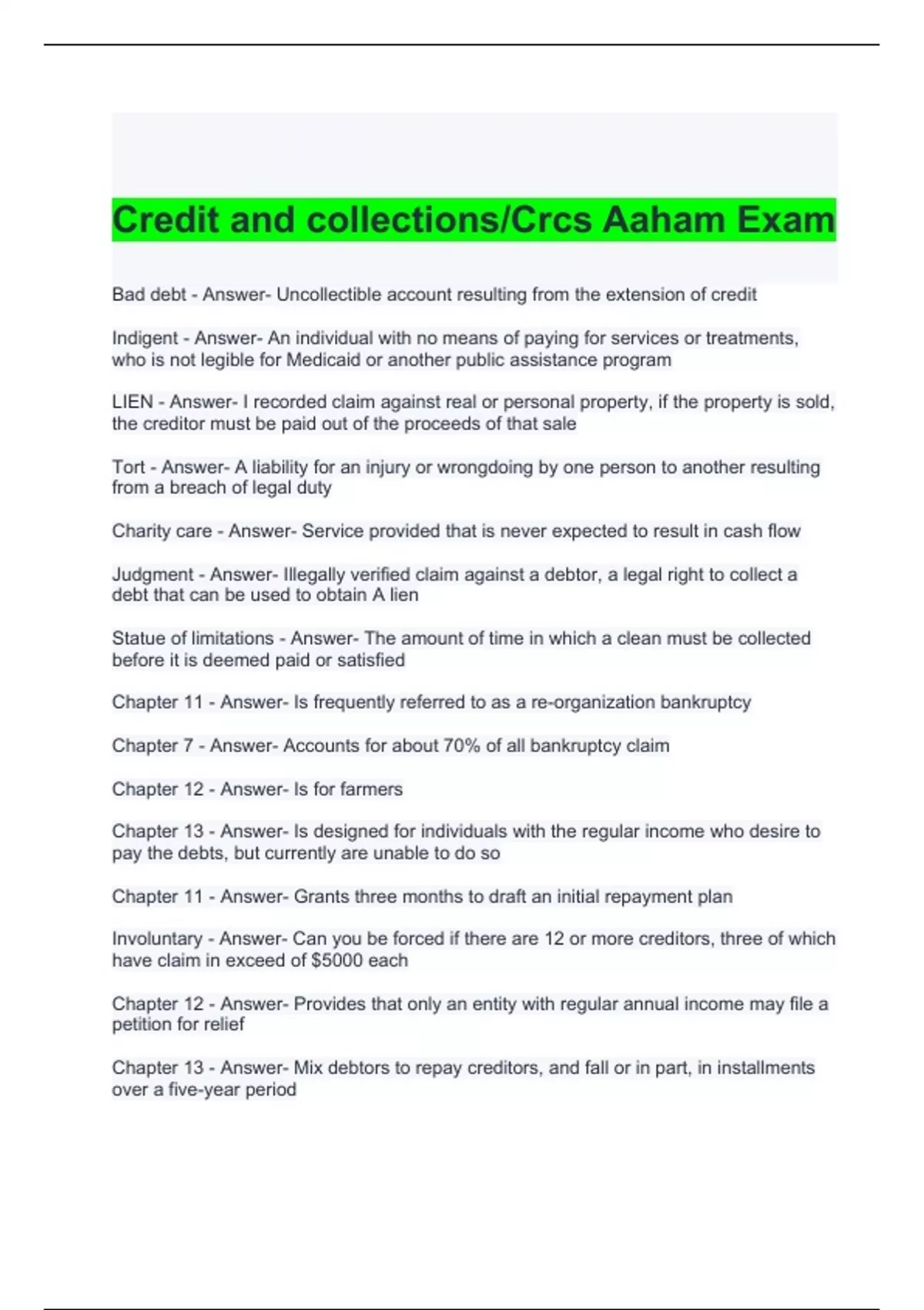 Credit and collections-Crcs Aaham Exam with correct Answers 2024