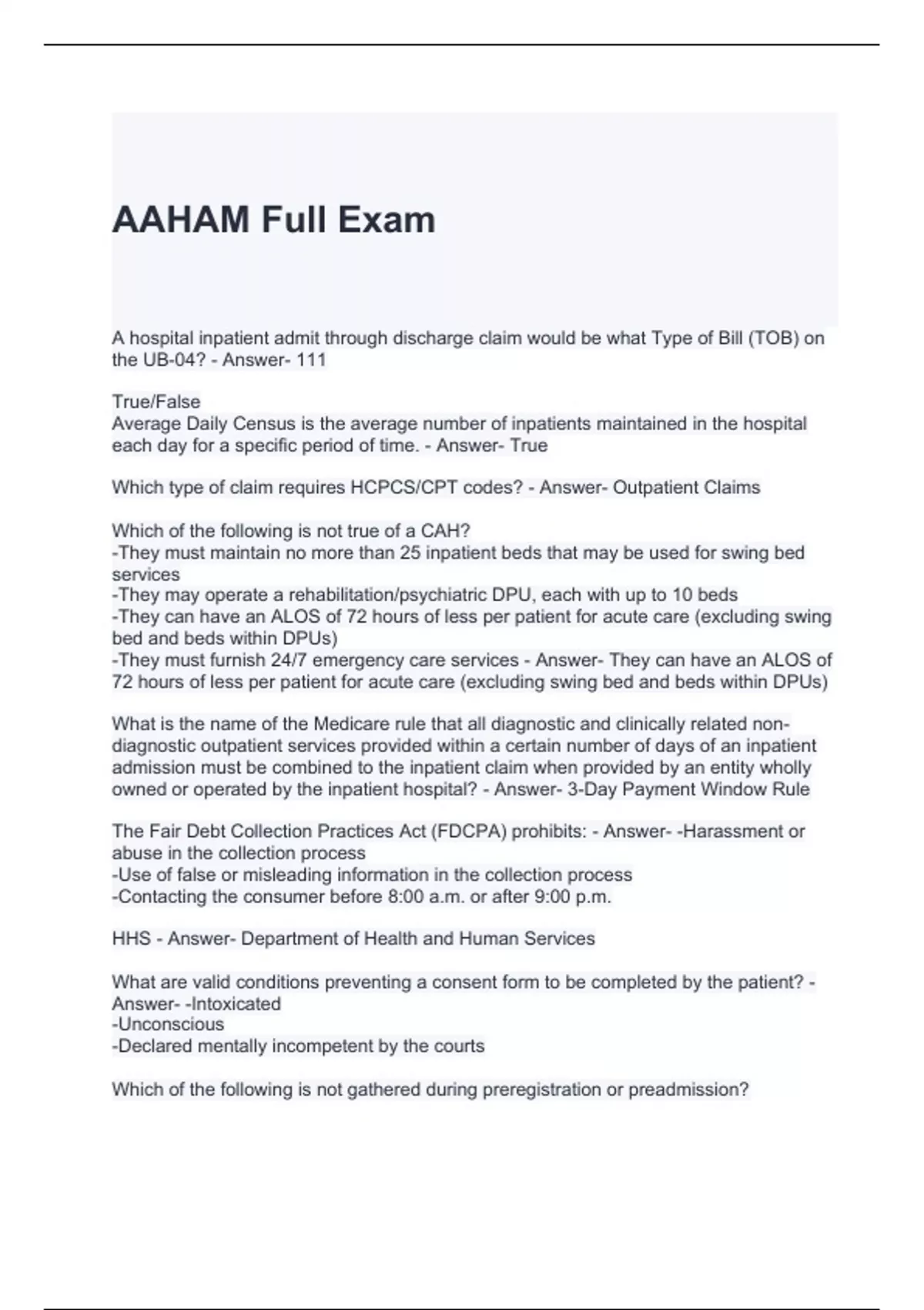 AAHAM/AAHAM CRCE EXAM BUNDLE (GRADED A)