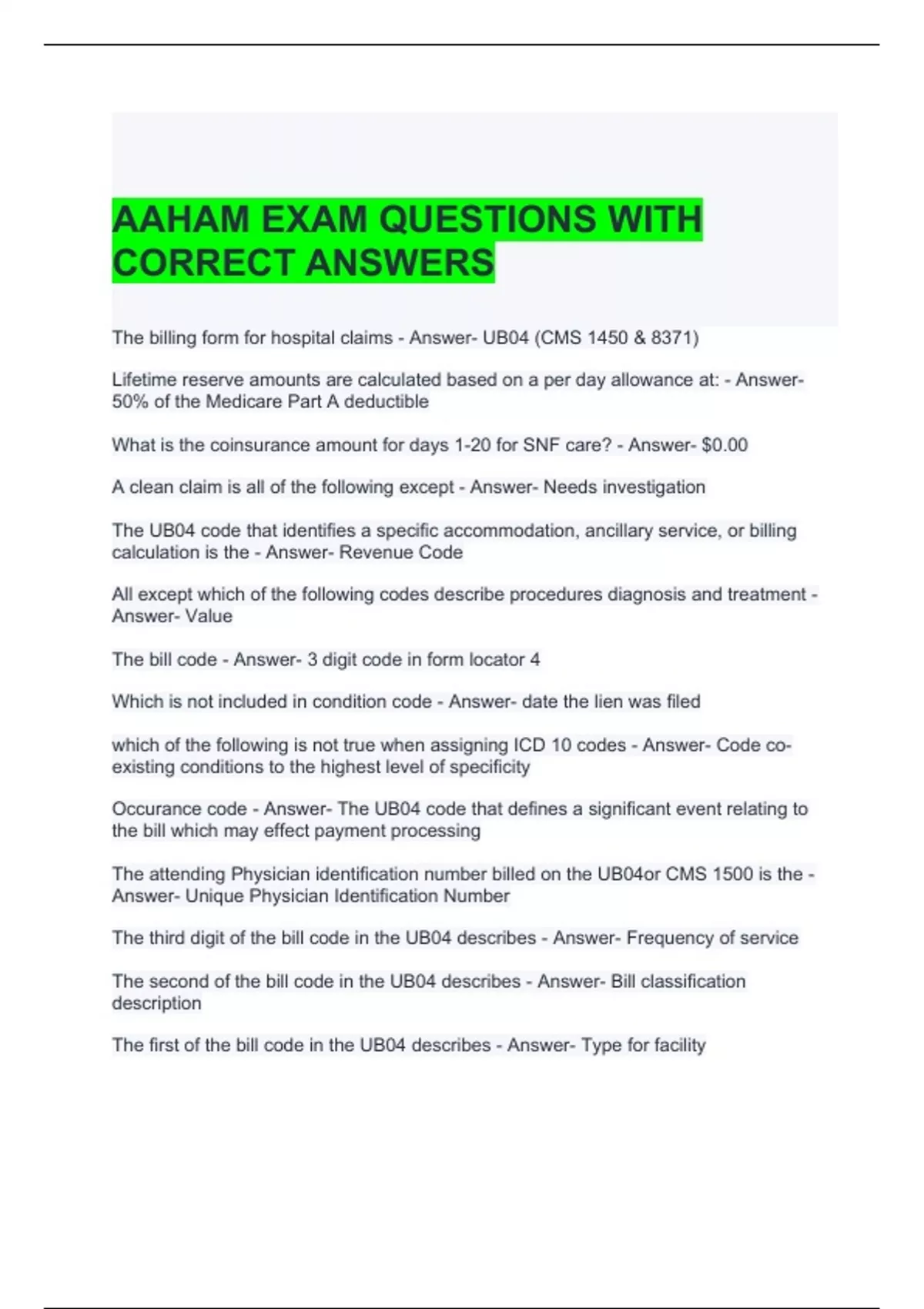 AAHAM EXAM QUESTIONS WITH CORRECT ANSWERS