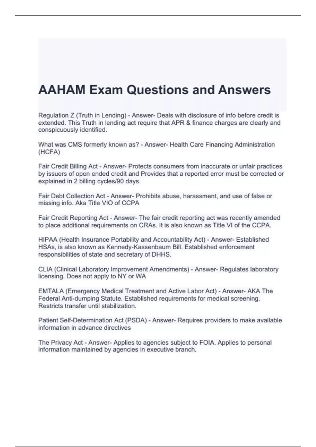 AAHAM Exam Questions and Answers