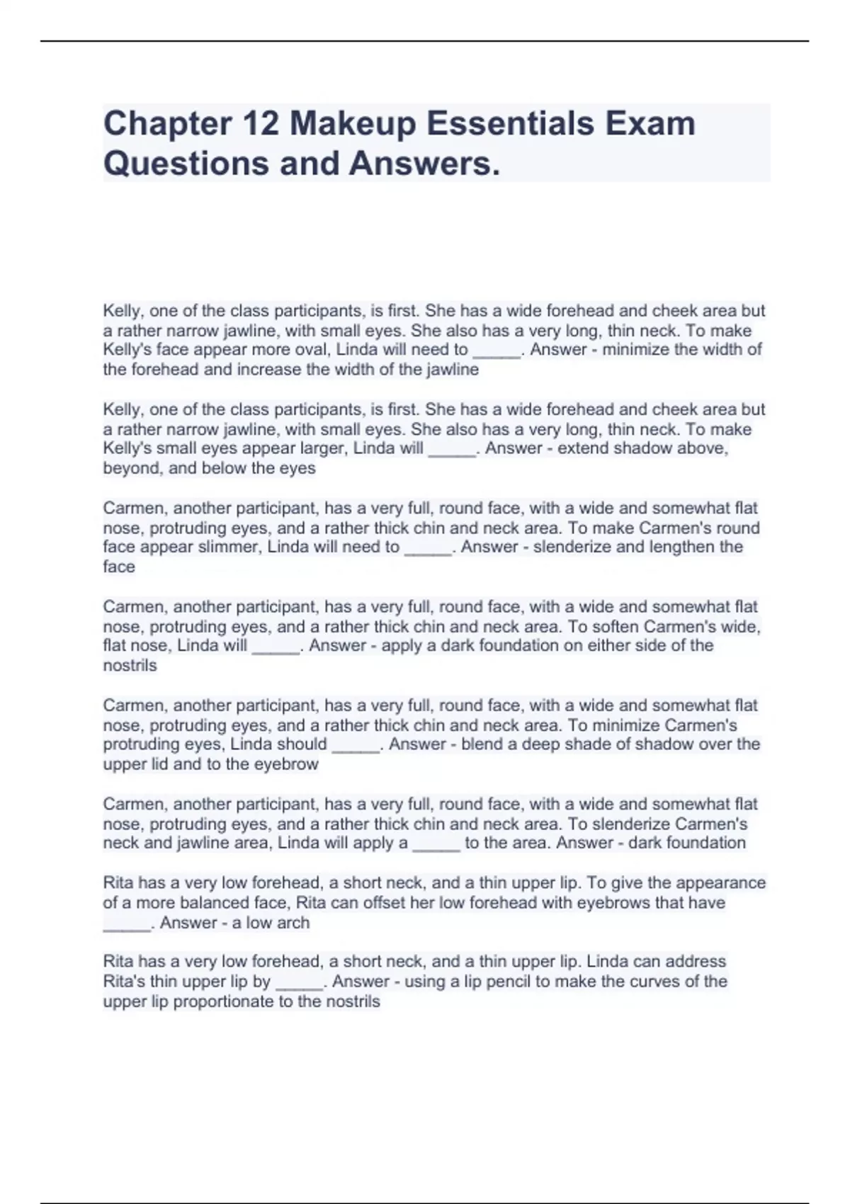 Chapter 12 Makeup Essentials Exam Questions and Answers