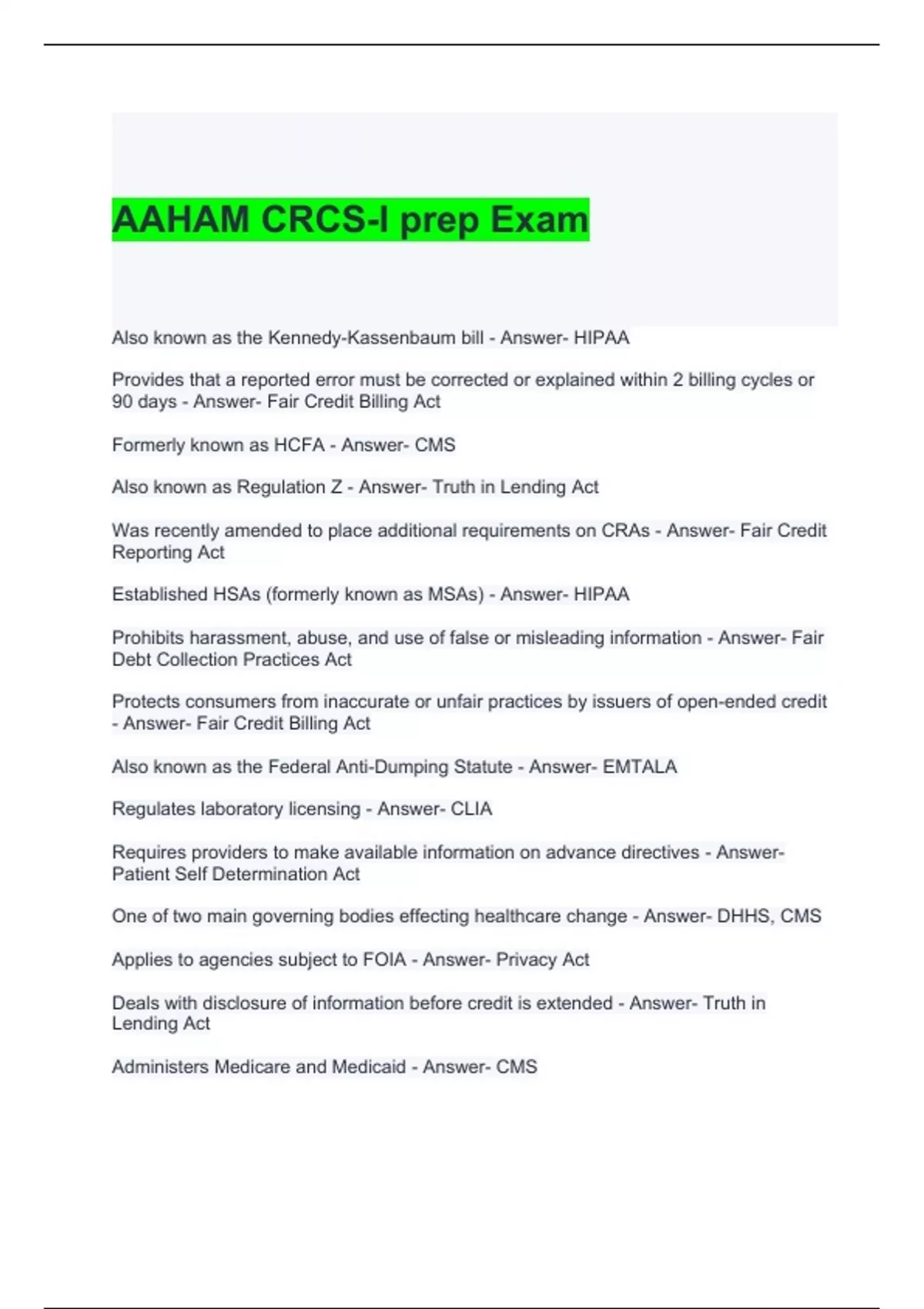 AAHAM/AAHAM CRCE EXAM BUNDLE (GRADED A)