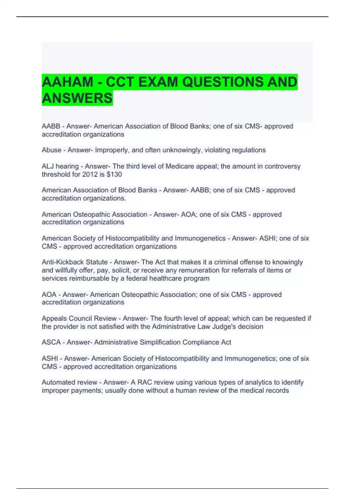 AAHAM - CCT EXAM QUESTIONS AND ANSWERS