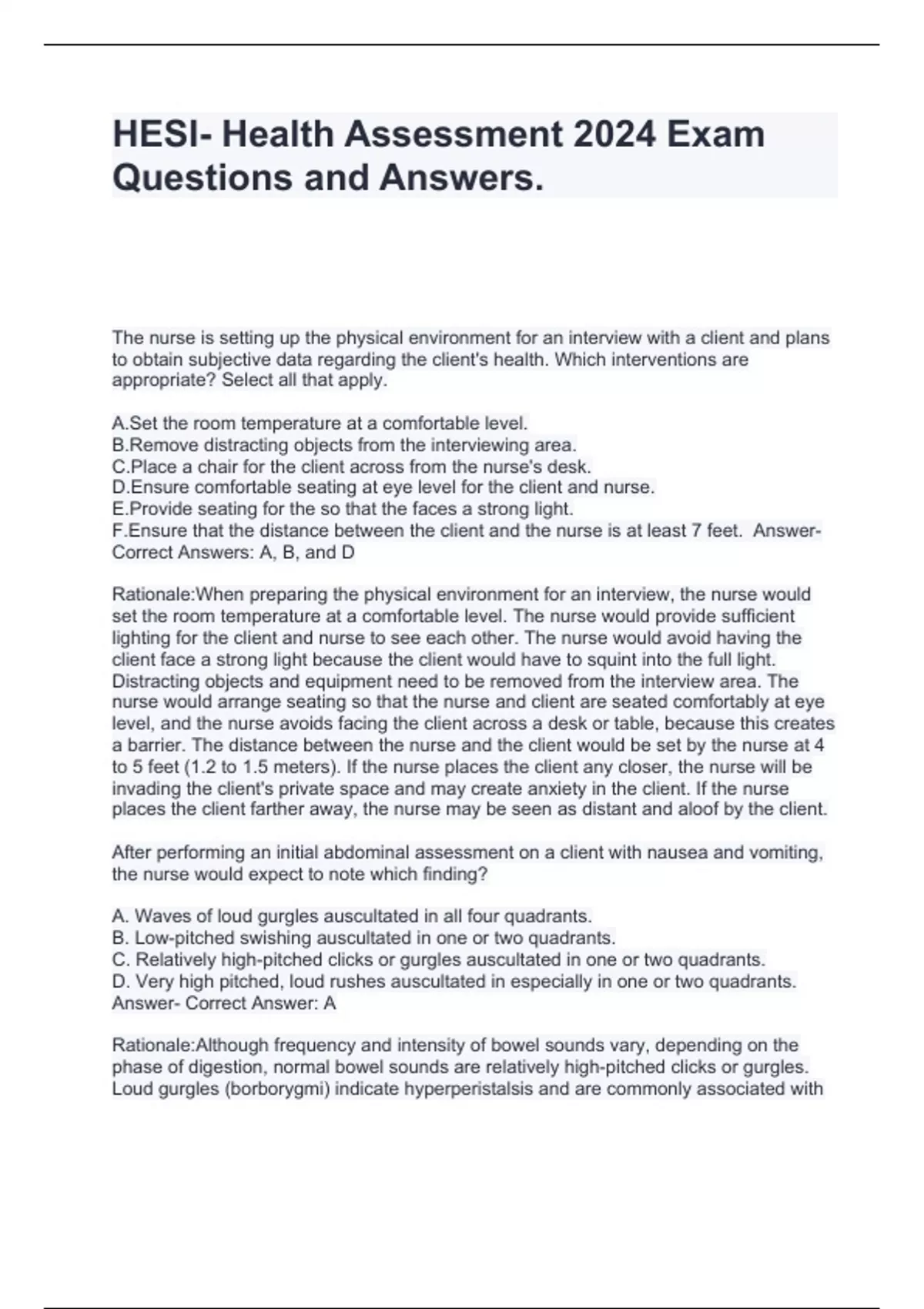HESI- Health Assessment 2024 Exam Questions and Answers.