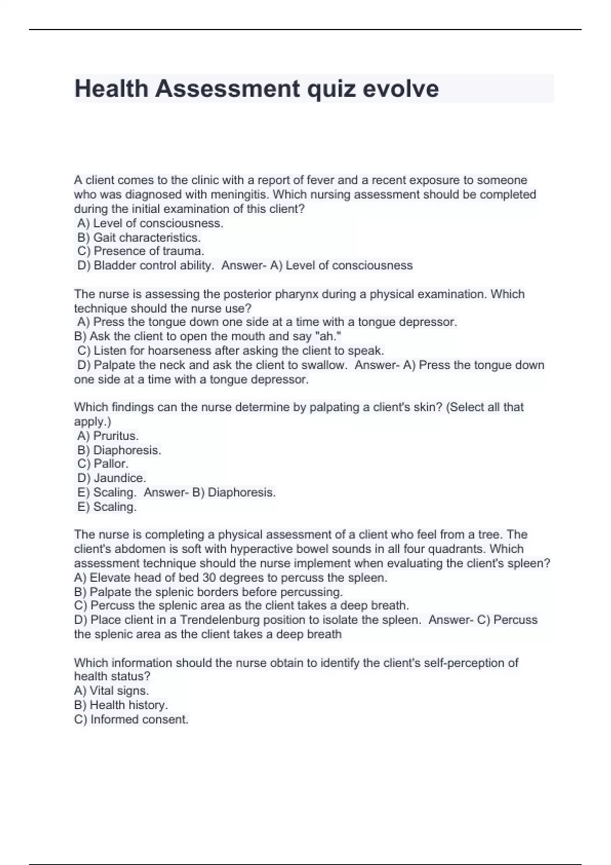 - HESI HEALTH ASSESSMENT