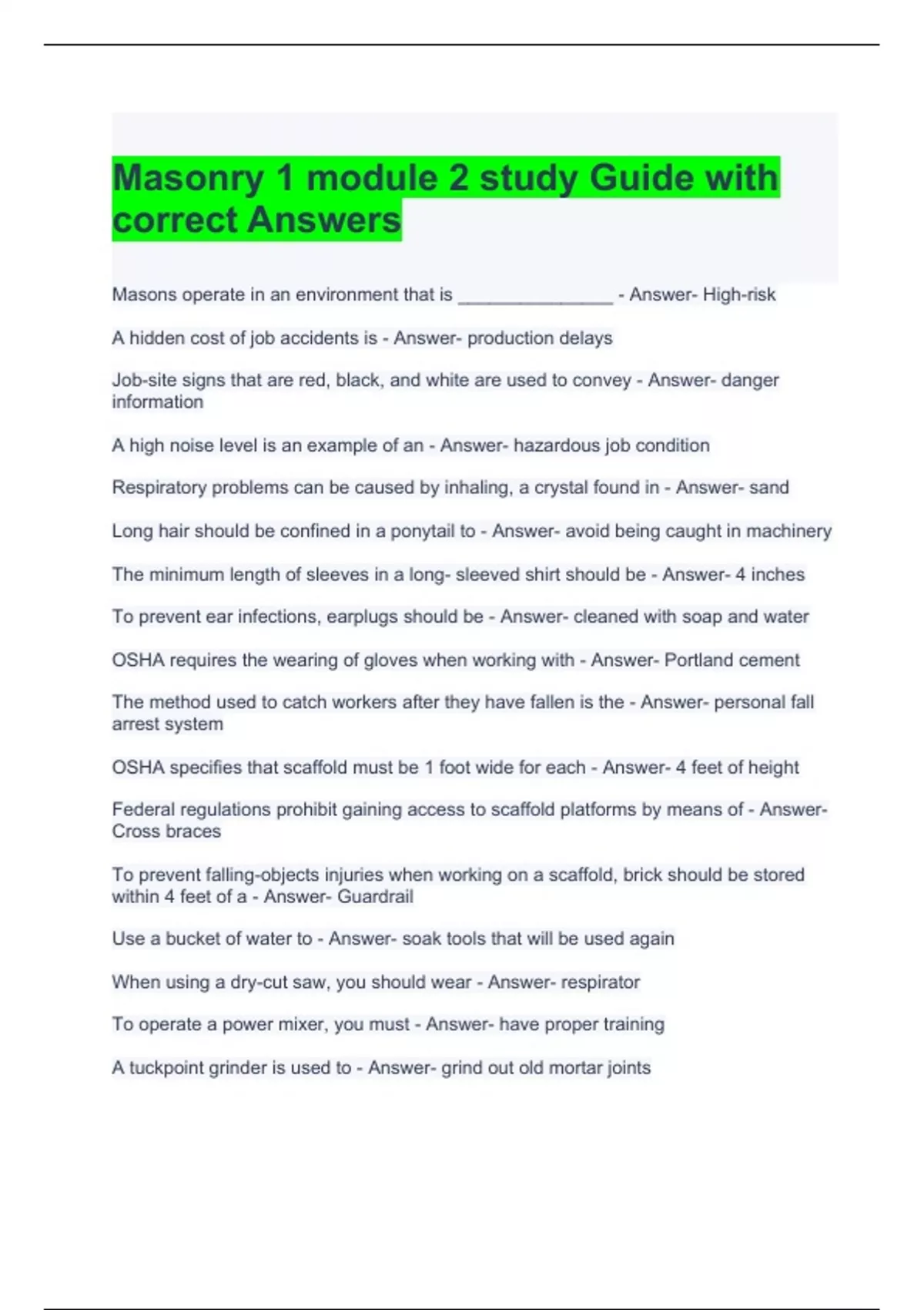 Masonry 1 module 2 study Guide with correct Answers- Graded A