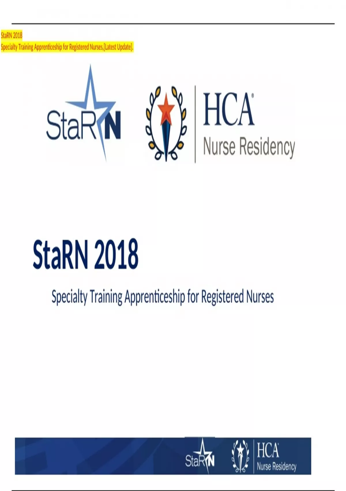 StaRN 2018 Specialty Training Apprenticeship for Registered Nurses,[Latest Update].
