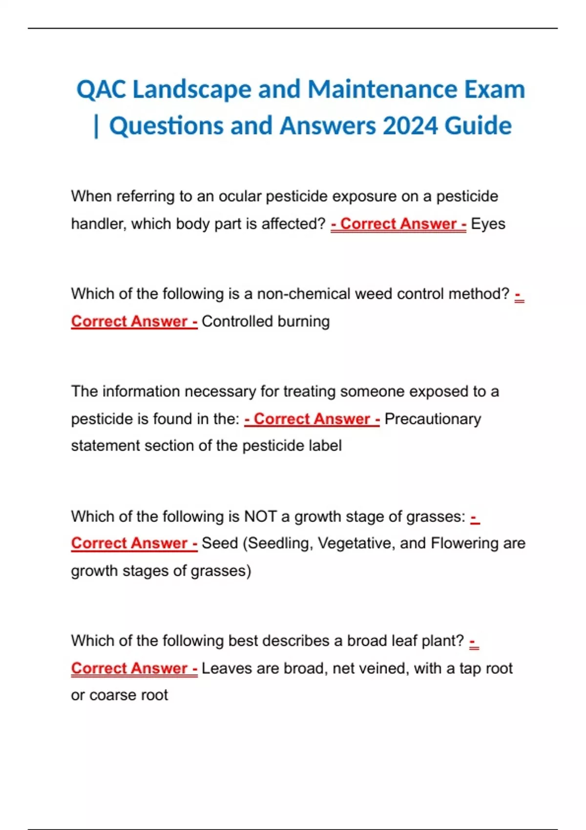 QAC Landscape and Maintenance Exam | Questions and Answers 2024 Guide