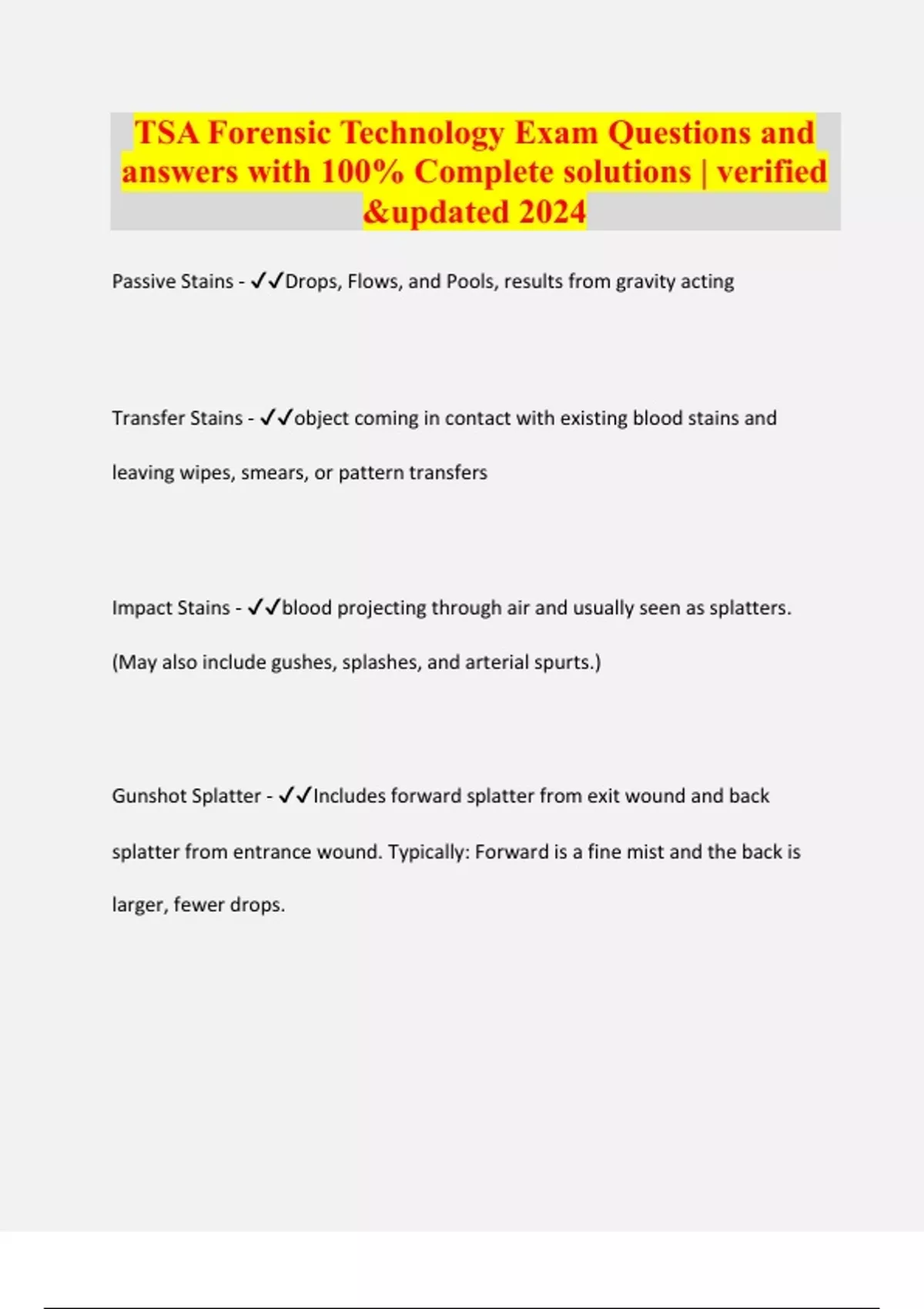Package deal ::: Forensics Exams 2024-2025 with 100% Correct Answers
