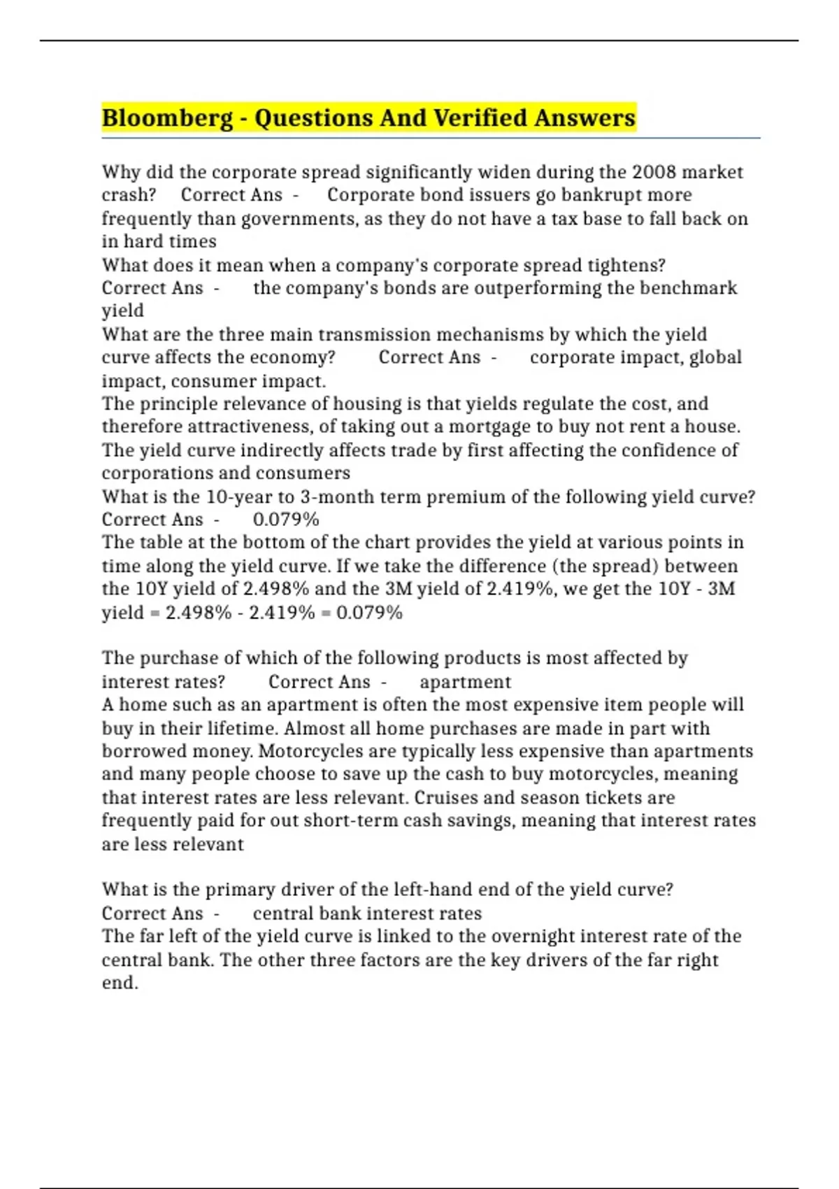 Bloomberg - Questions And Verified Answers