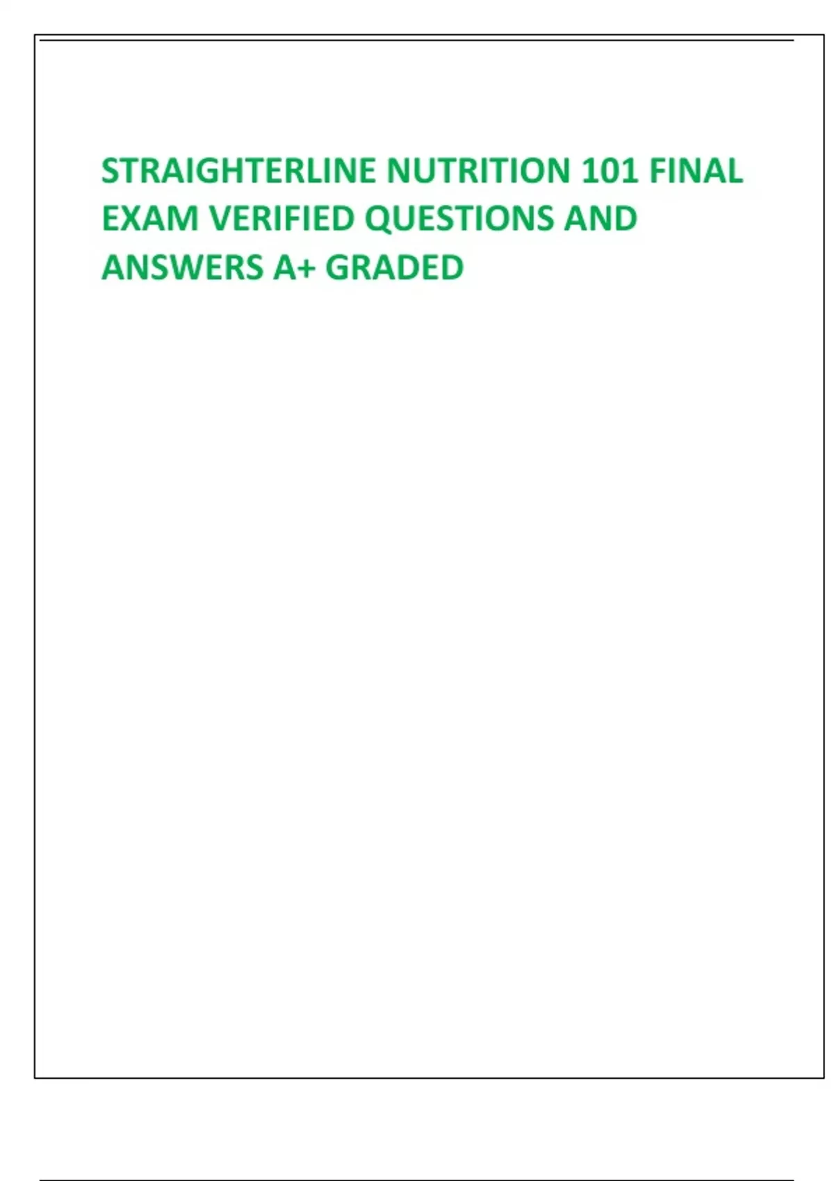 STRAIGHTERLINE NUTRITION 101 FINAL EXAM VERIFIED QUESTIONS AND ANSWERS A+ GRADED