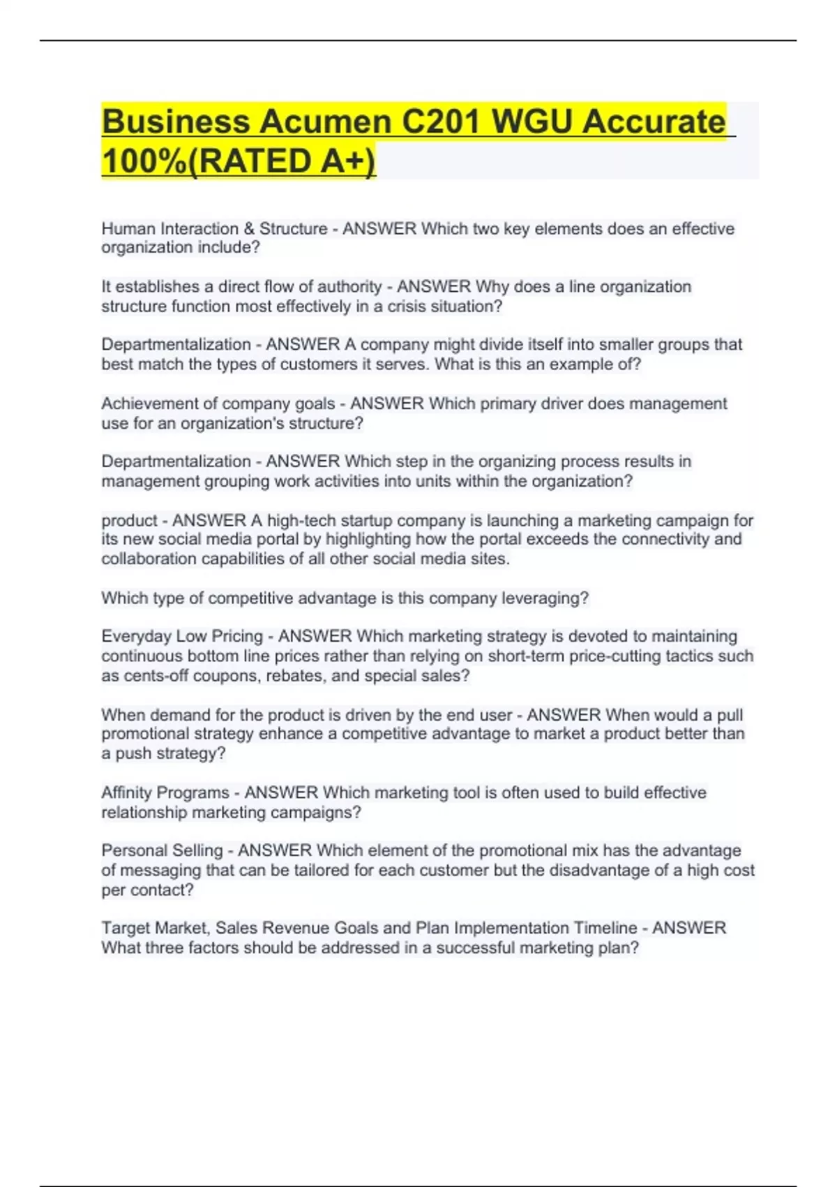 Business Acumen C201 WGU Accurate 100%(RATED A+)