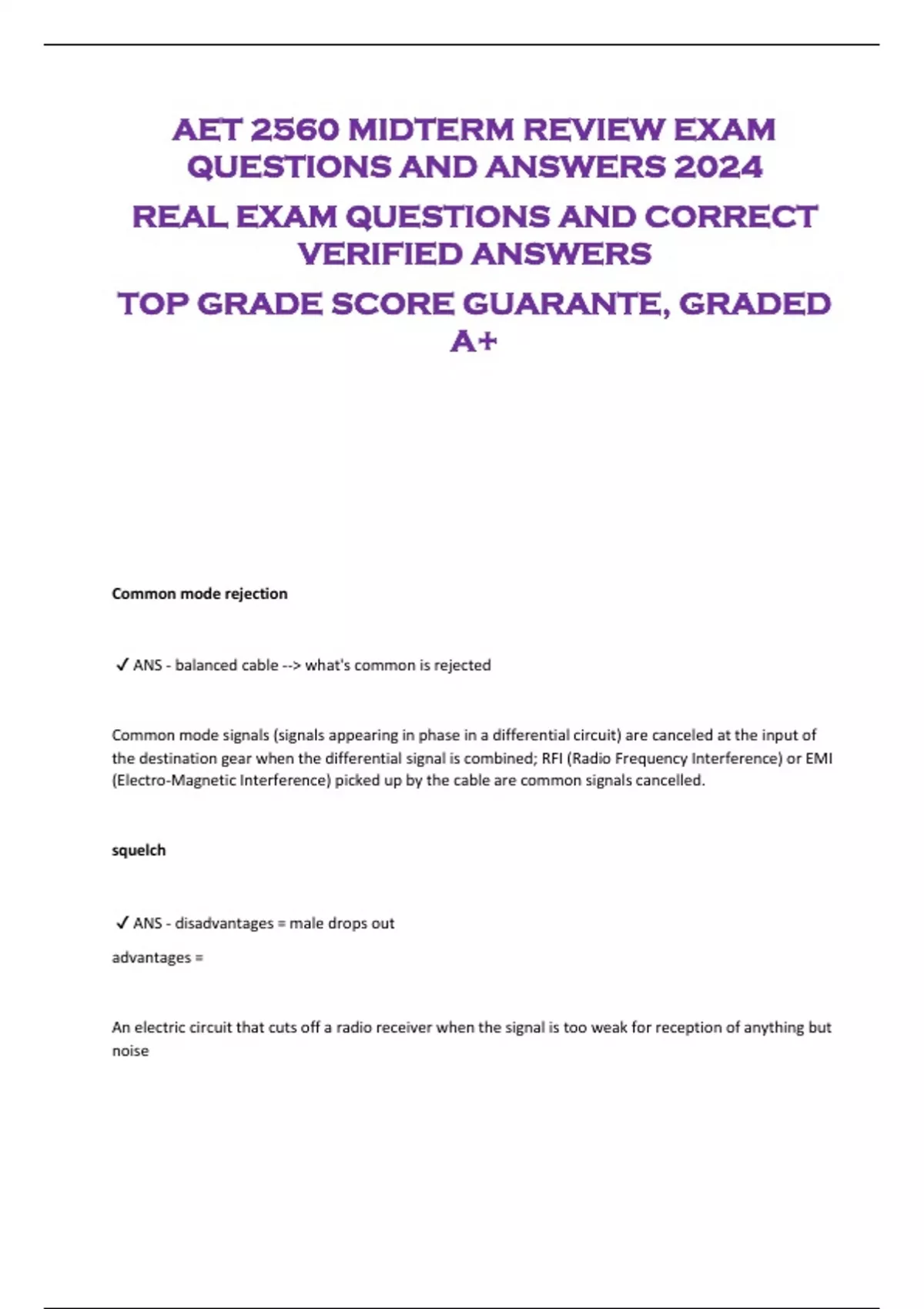 AET 2560 MIDTERM REVIEW EXAM QUESTIONS AND ANSWERS 2024 REAL EXAM QUESTIONS AND CORRECT VERIFIED ANSWERS TOP GRADE SCORE GUARANTE, GRADED A+