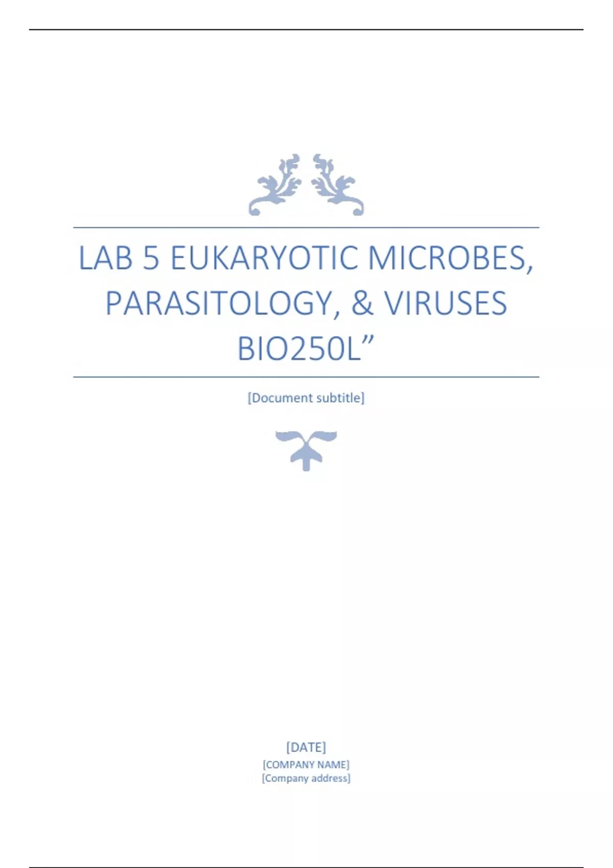 Lab 5 Eukaryotic Microbes, Parasitology, & Viruses BIO250L”