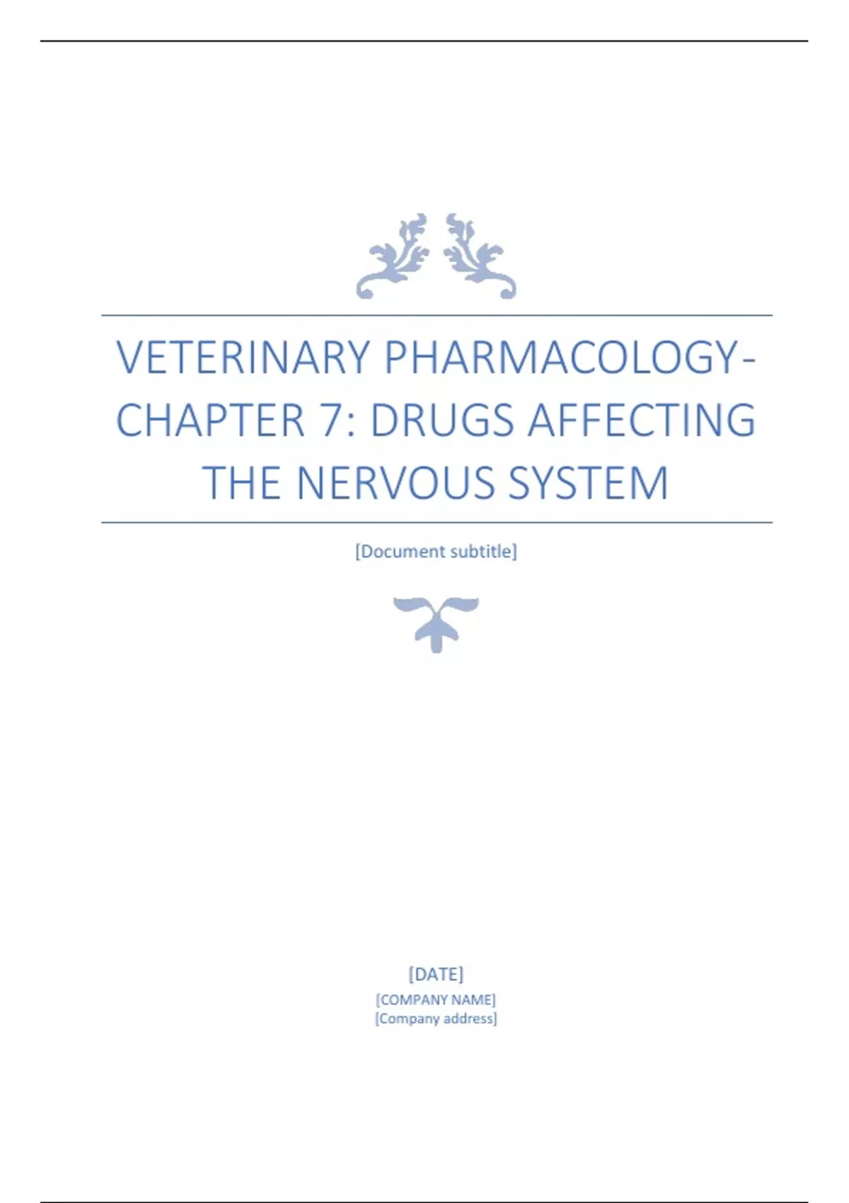 VETERINARY PHARMACOLOGY - CHAPTER 7: DRUGS AFFECTING THE NERVOUS SYSTEM