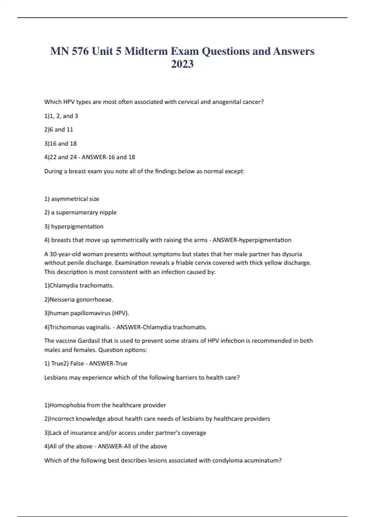 MN 576 Unit 5 Midterm Exam Questions and Answers 2023