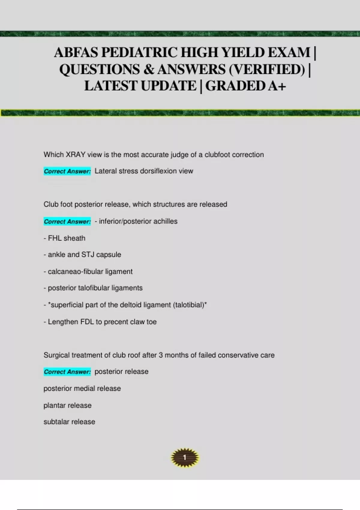 ABFAS PEDIATRIC HIGH YIELD EXAM | QUESTIONS & ANSWERS (VERIFIED) | LATEST UPDATE | GRADED A+