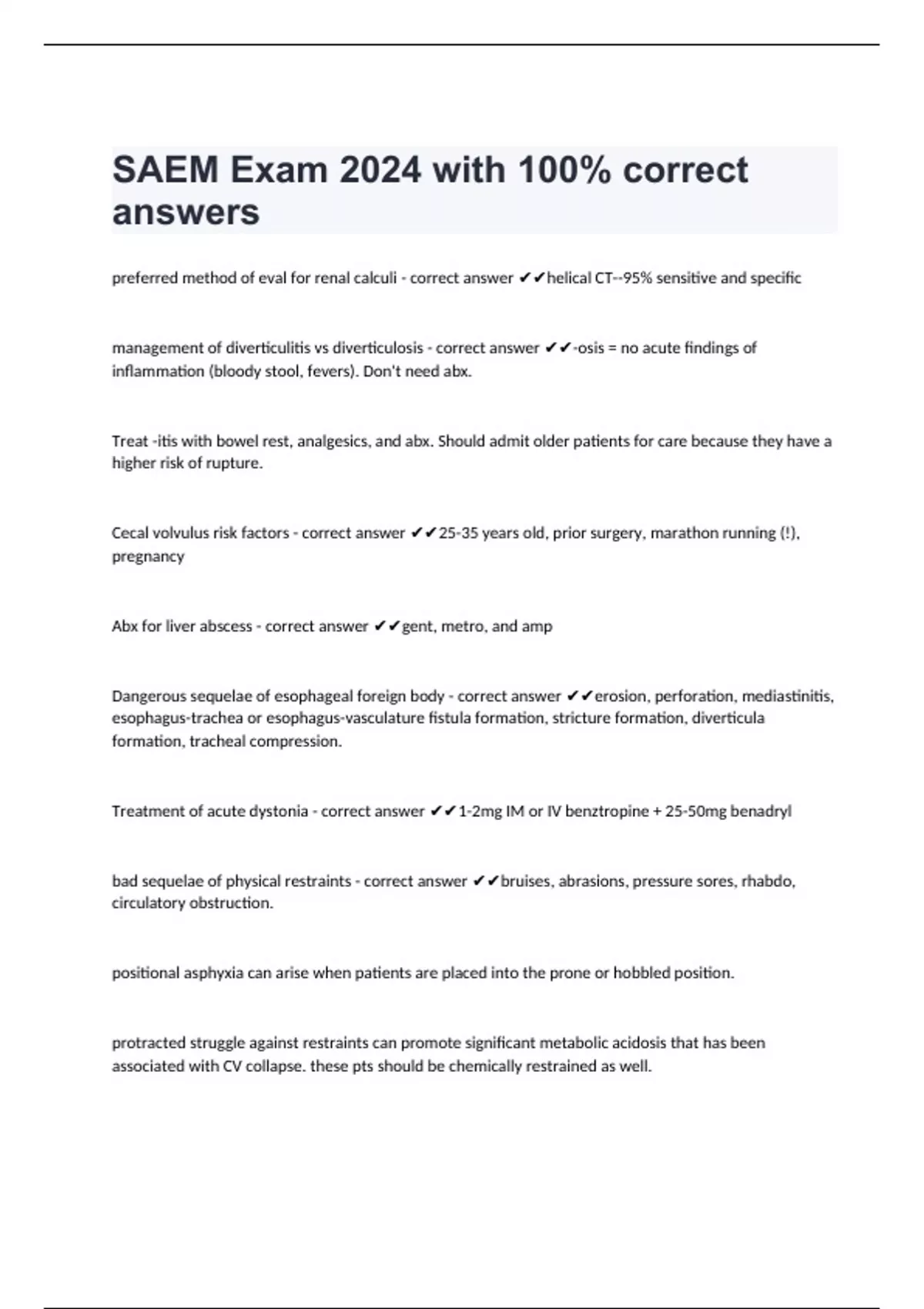 SAEM Exam 2024 with 100% correct answers