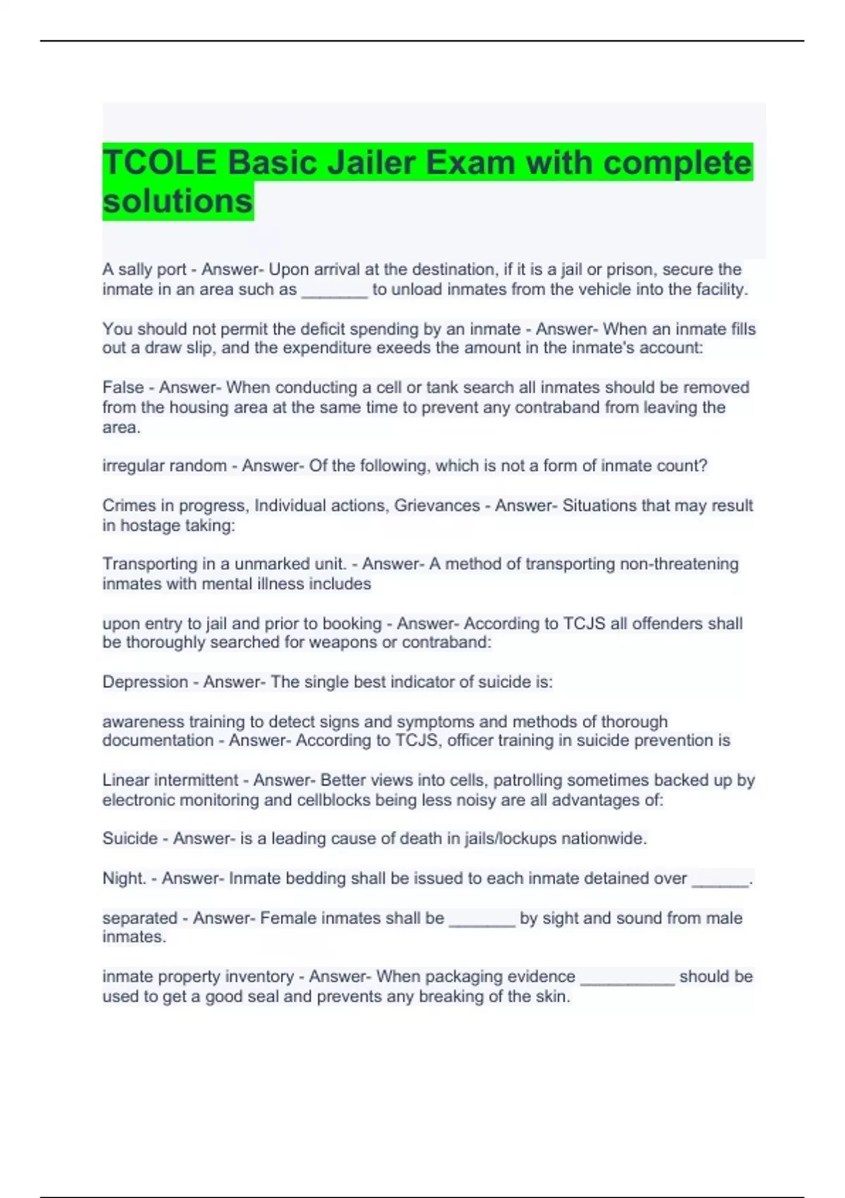 TCOLE Basic Jailer Exam with complete solutions/ Graded A